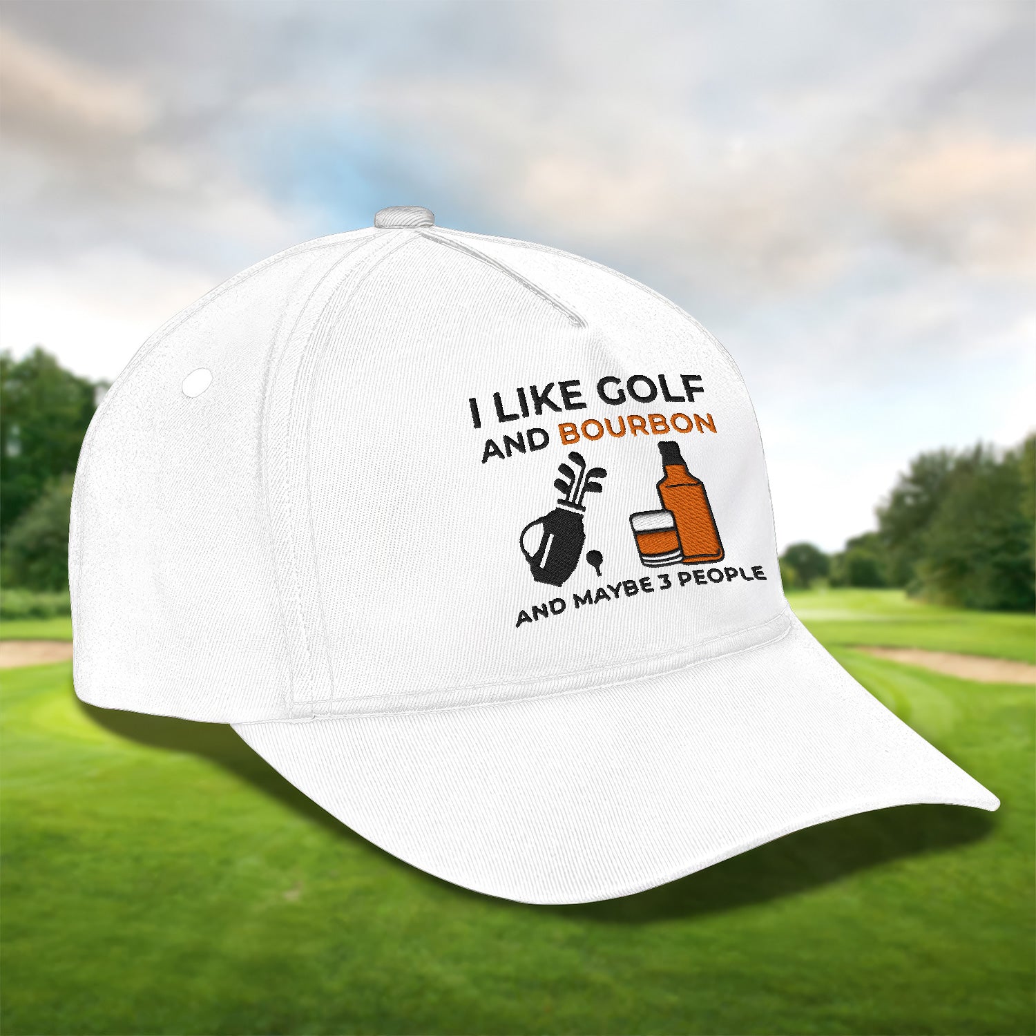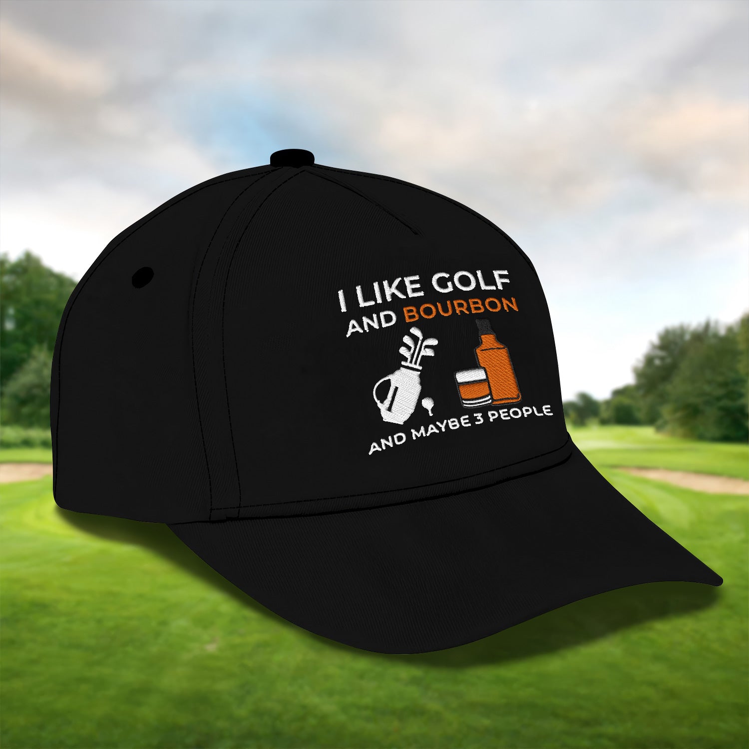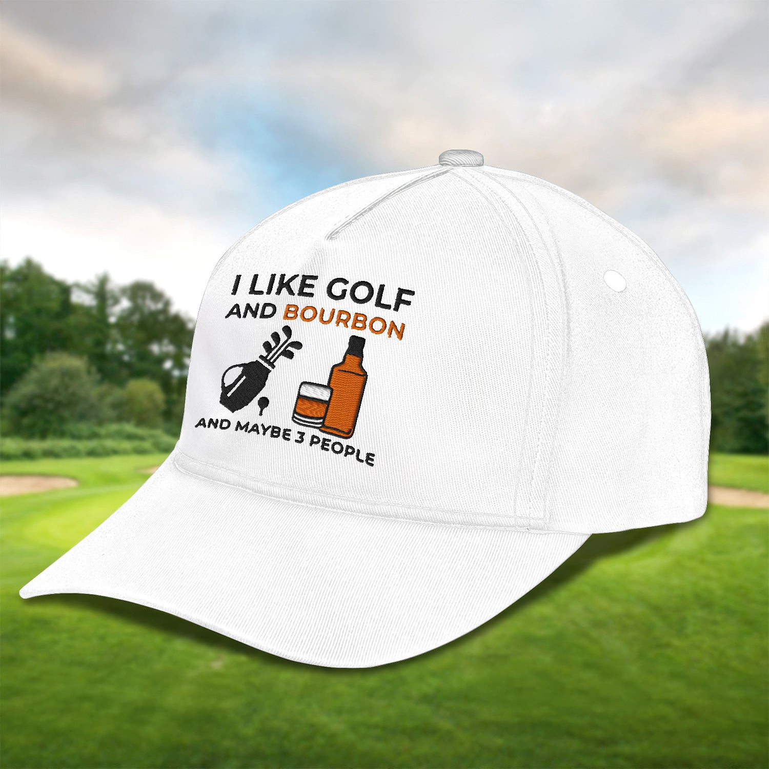 I Like Golf And Bourbon Embroidered Baseball Cap, Golf Hat, Dad Golf Gift