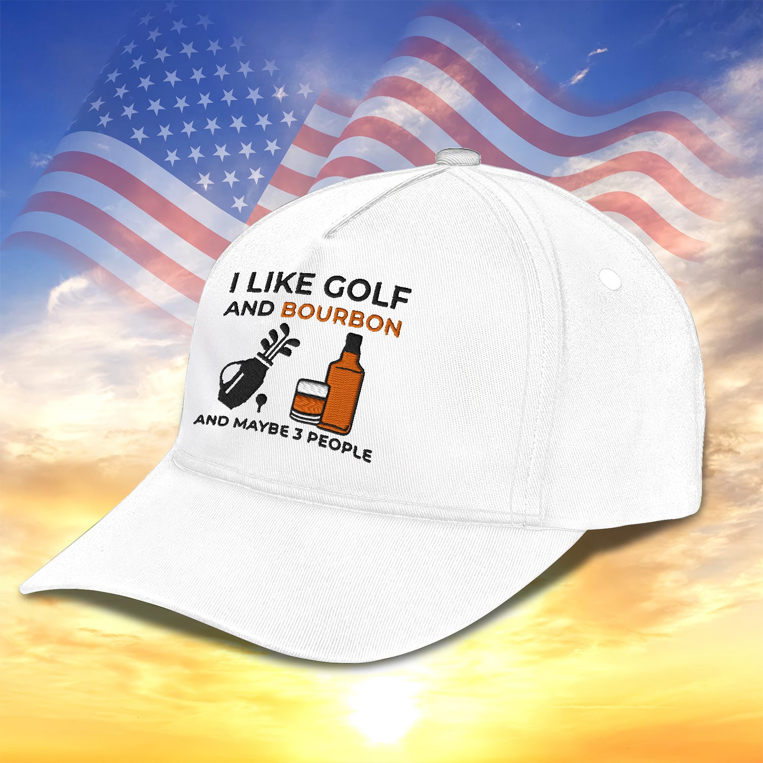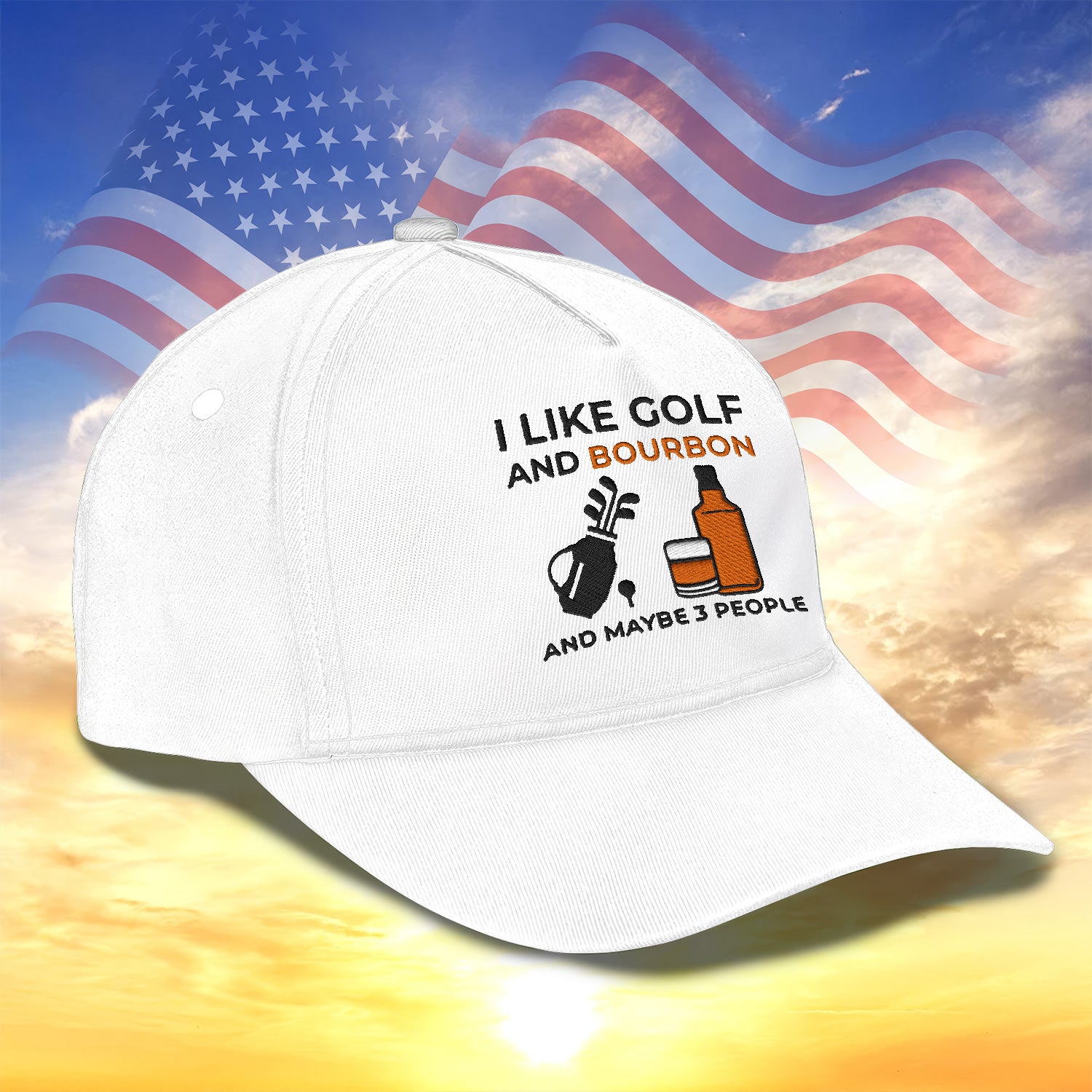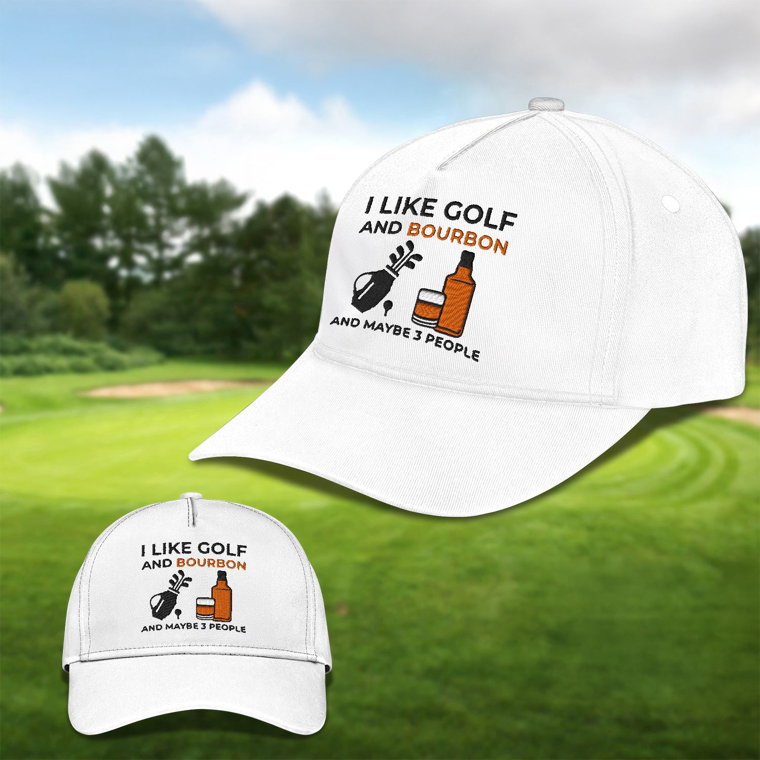 I Like Golf And Bourbon Embroidered Baseball Cap, Golf Hat, Dad Golf Gift