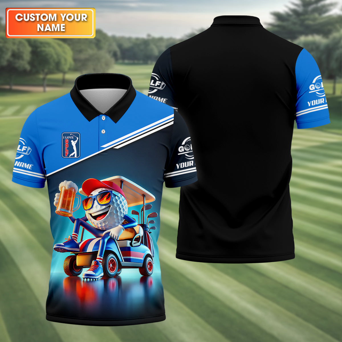 I Love Golf Custom Men's Golf Polo Shirt, Funny Beer Golf Shirt, Dad Golf Gifts