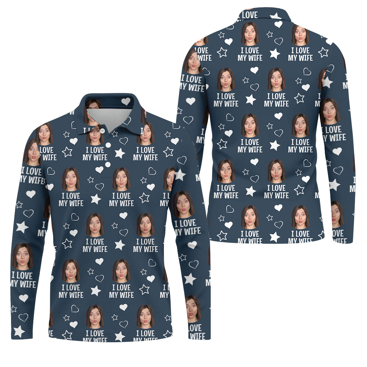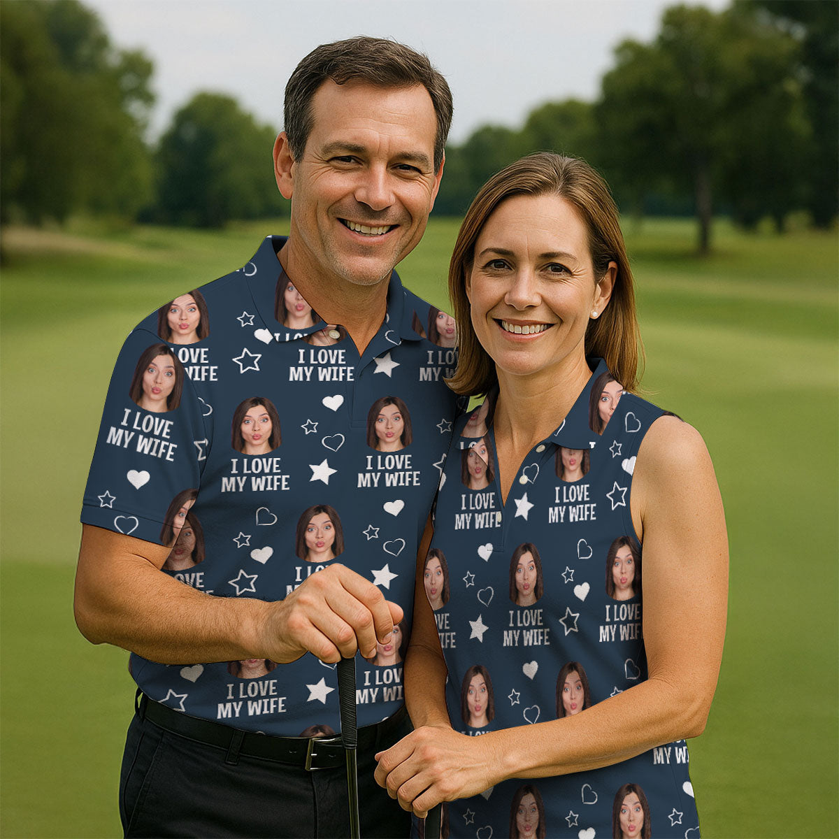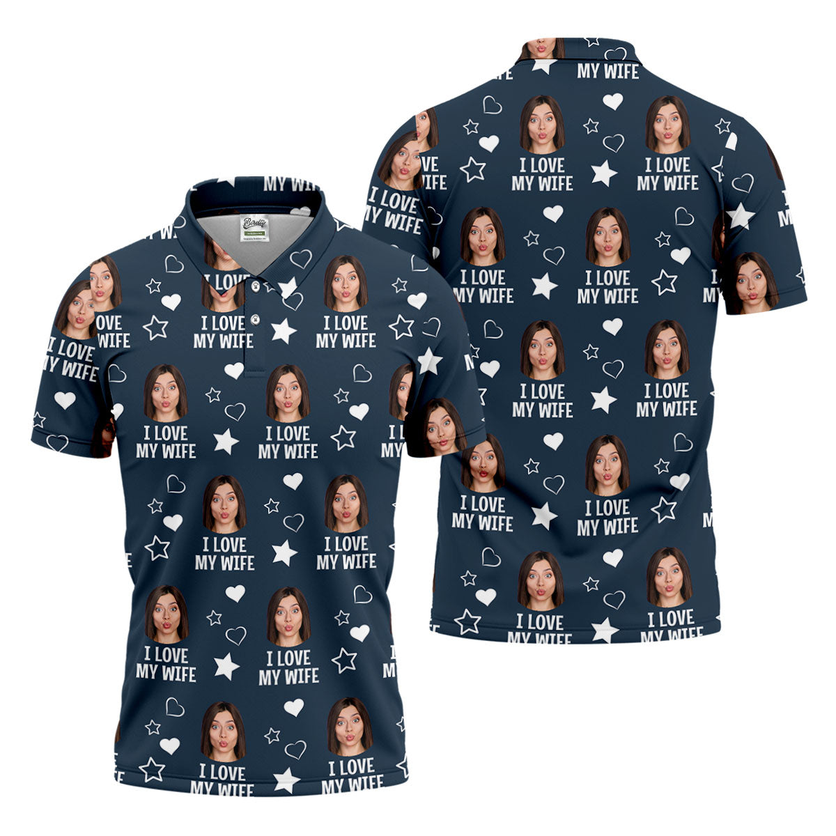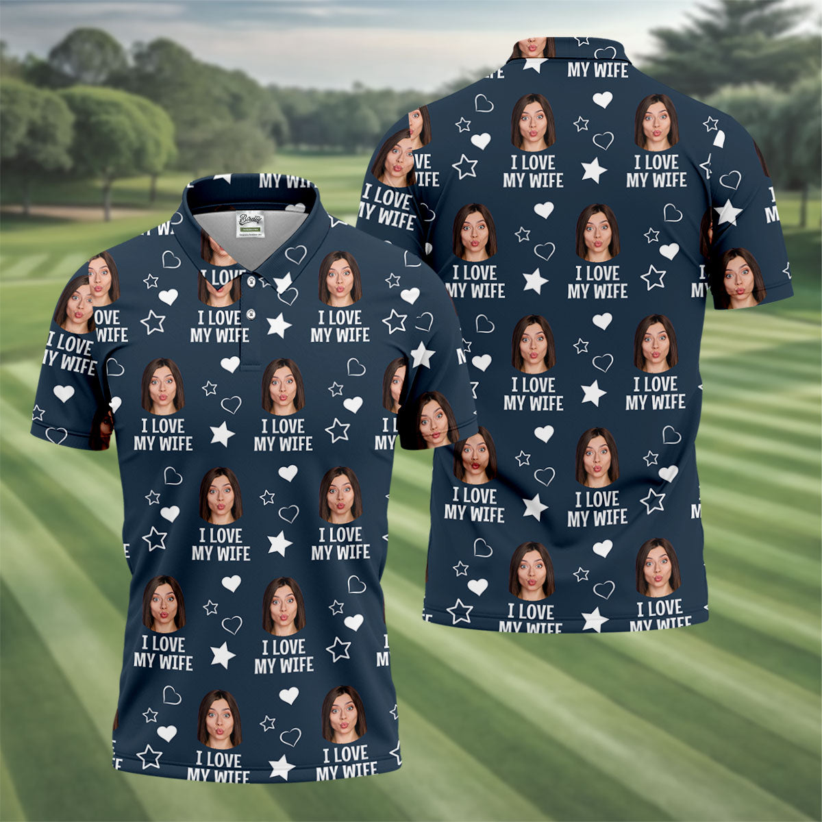 I Love My Wife Custom Face Navy Golf Shirt, Fun Golf Shirts For Men, Valentines Golf Gift, Polo Shirts For Men