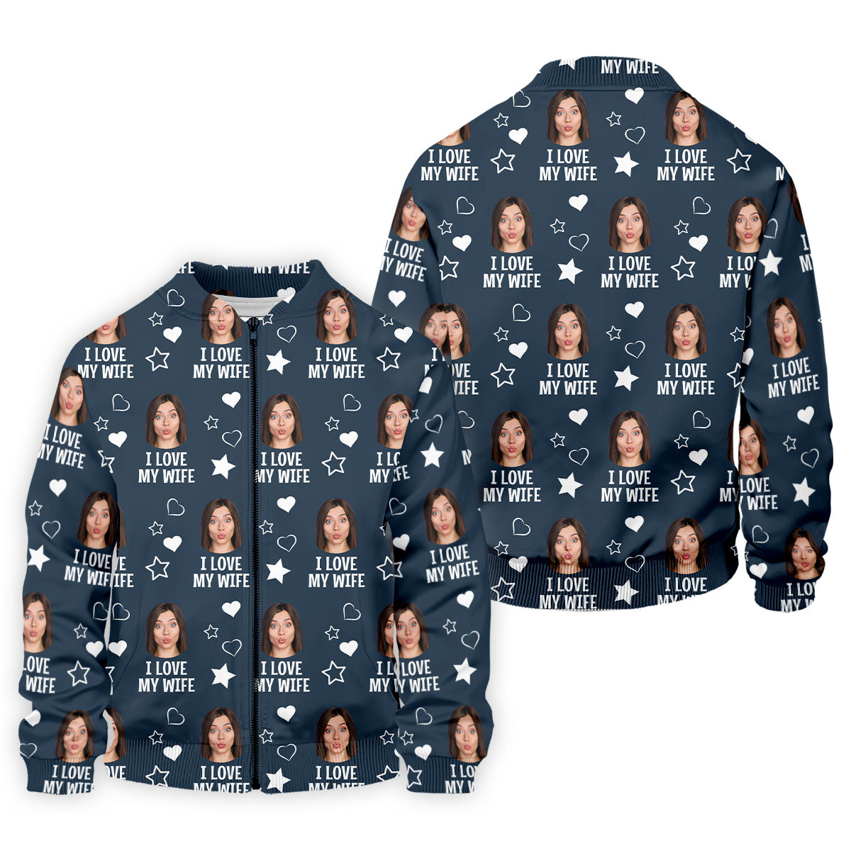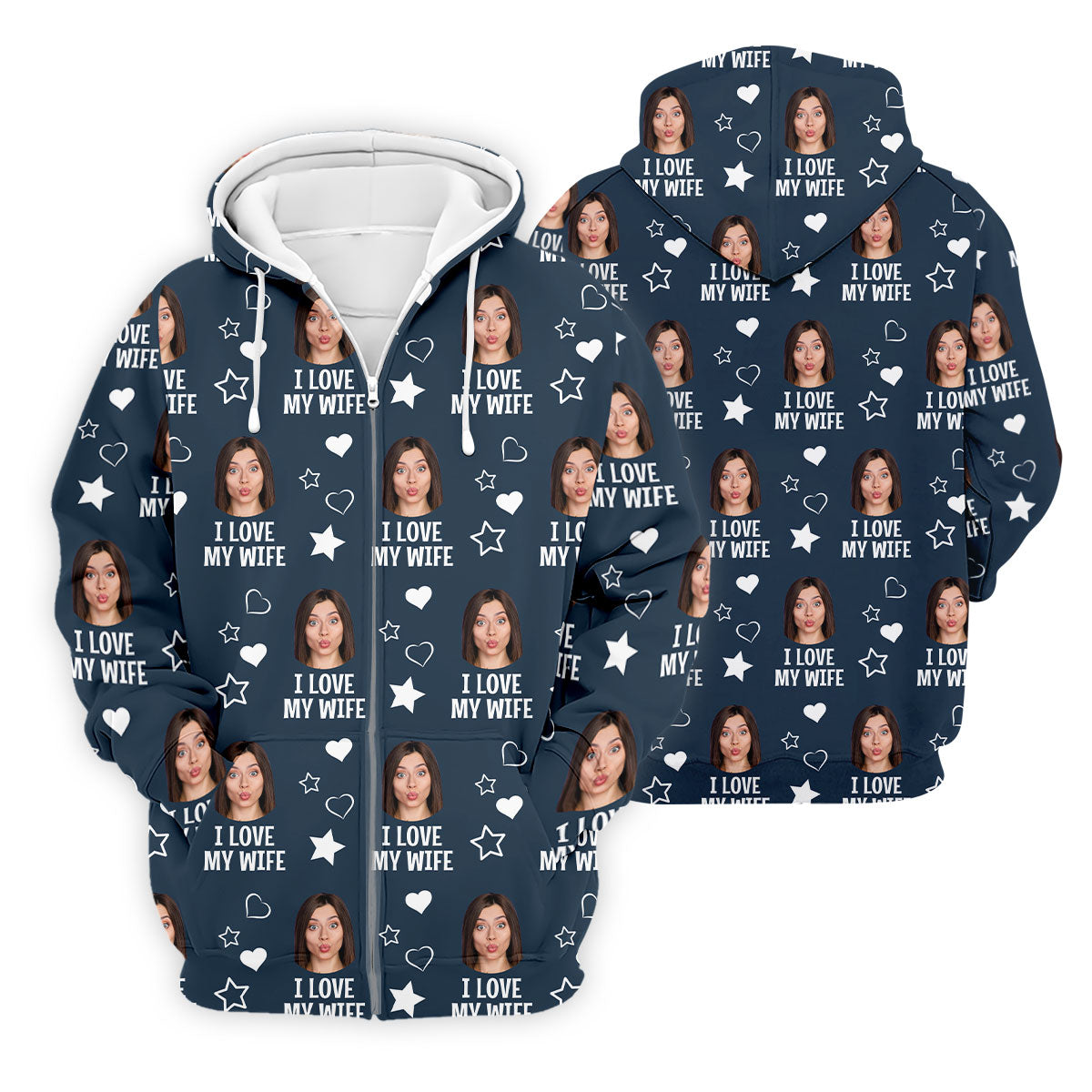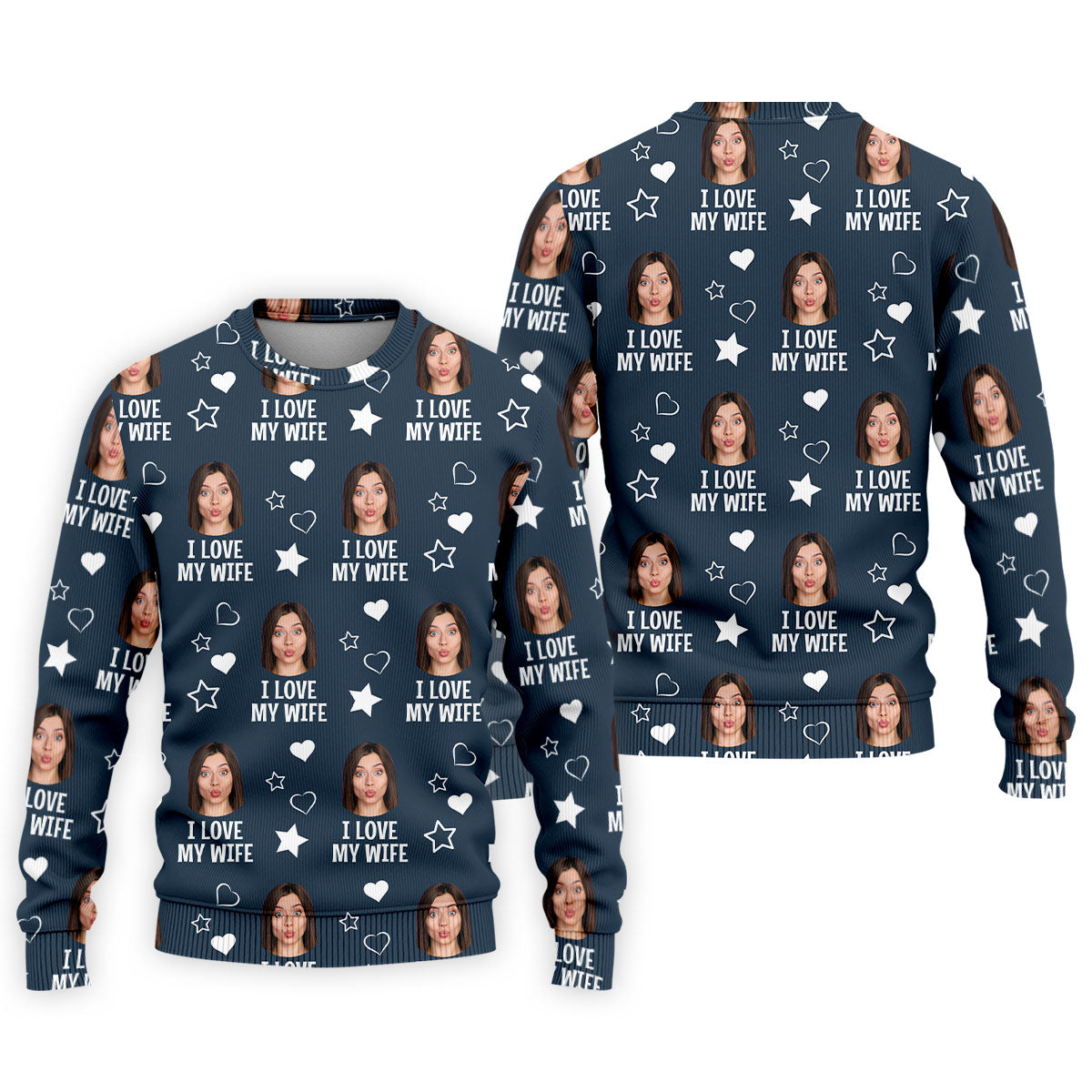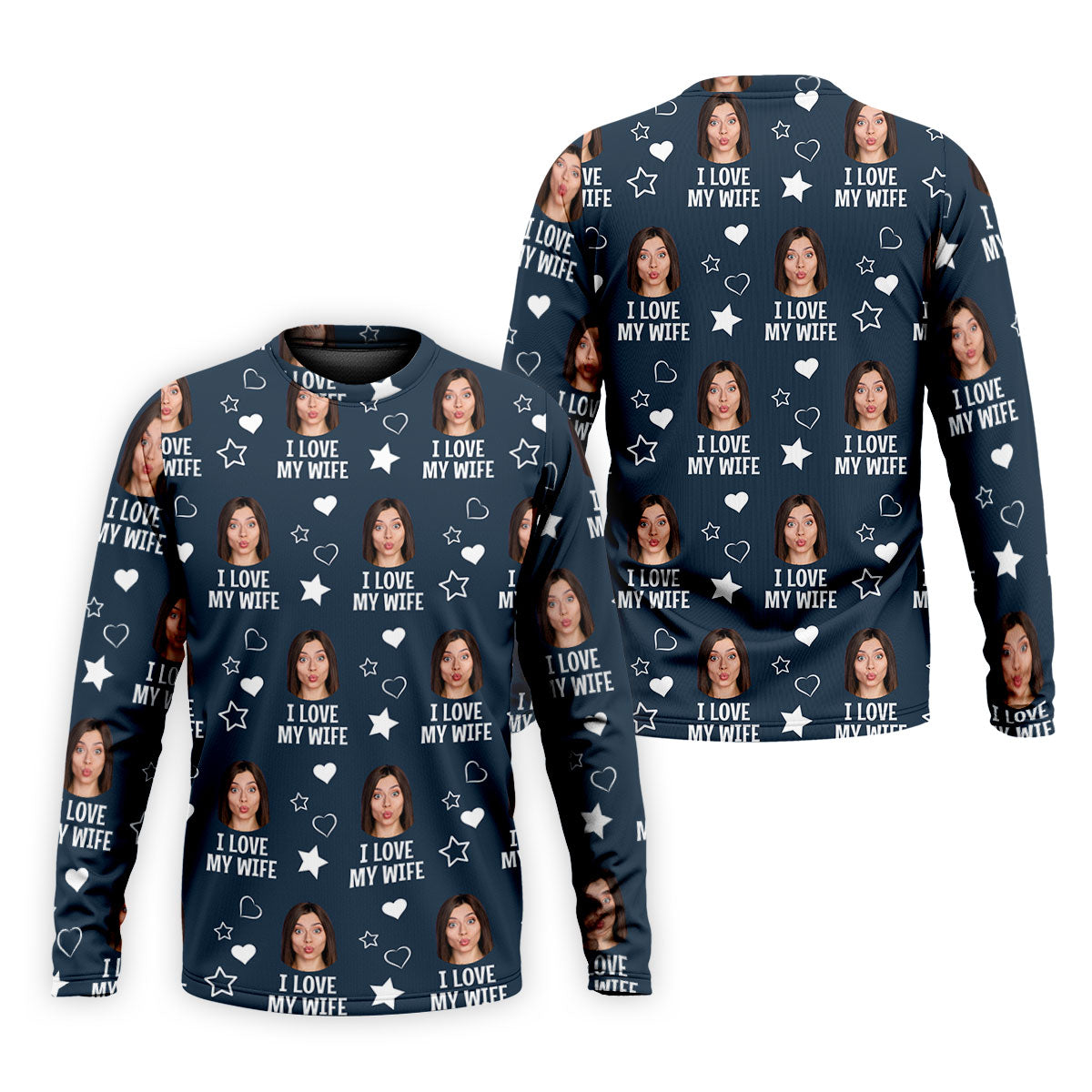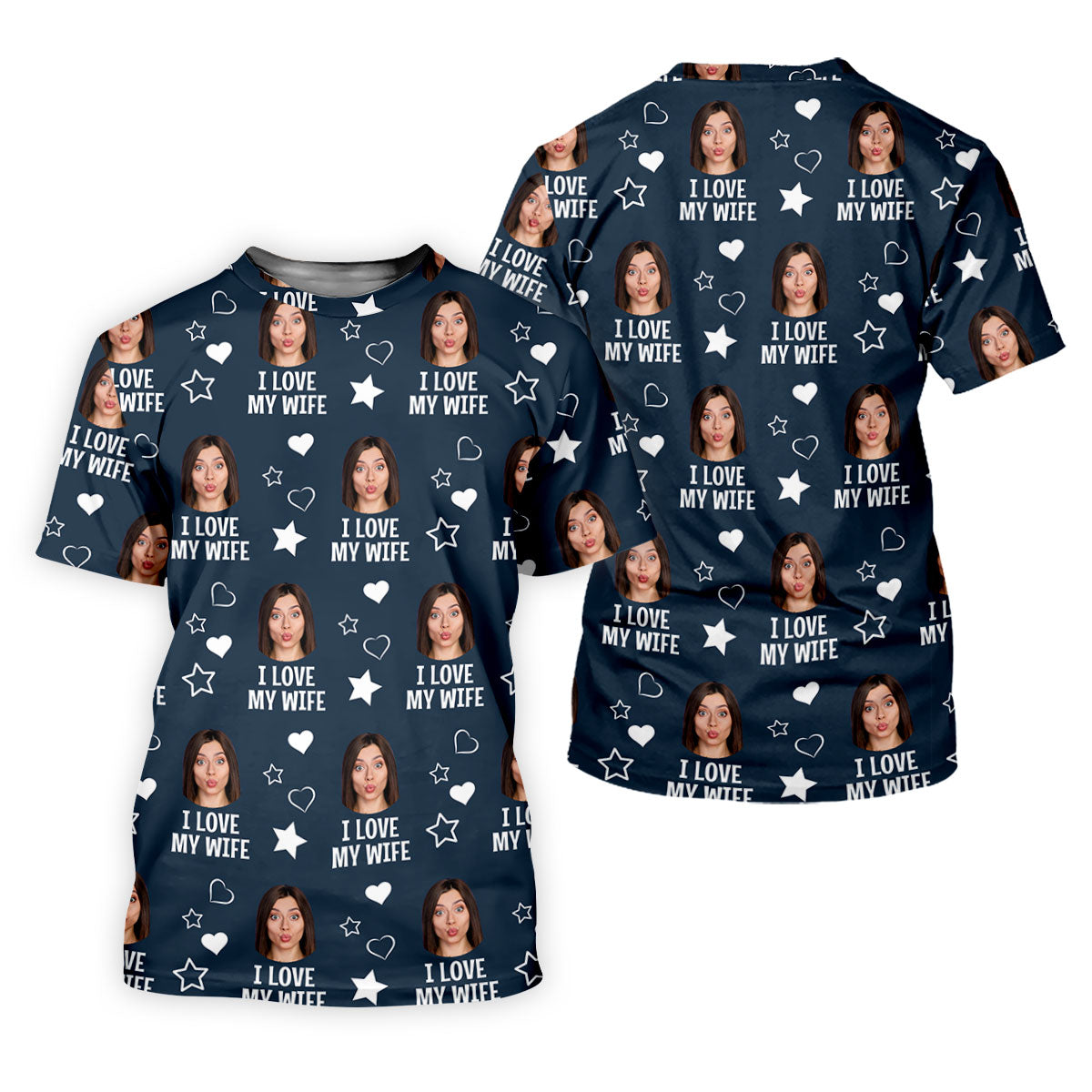 I Love My Wife Custom Face Navy Golf Shirt, Fun Golf Shirts For Men, Valentines Golf Gift, Polo Shirts For Men
