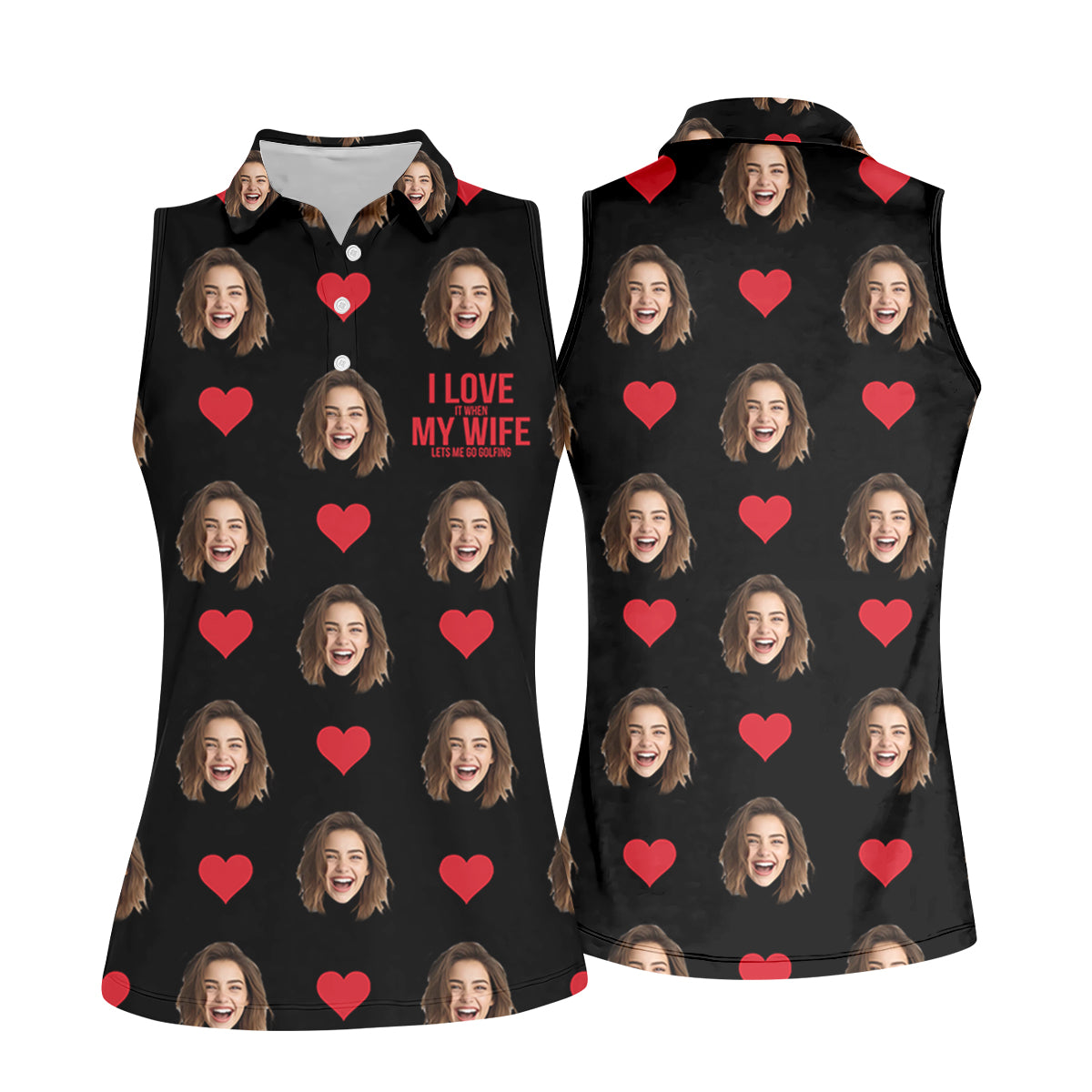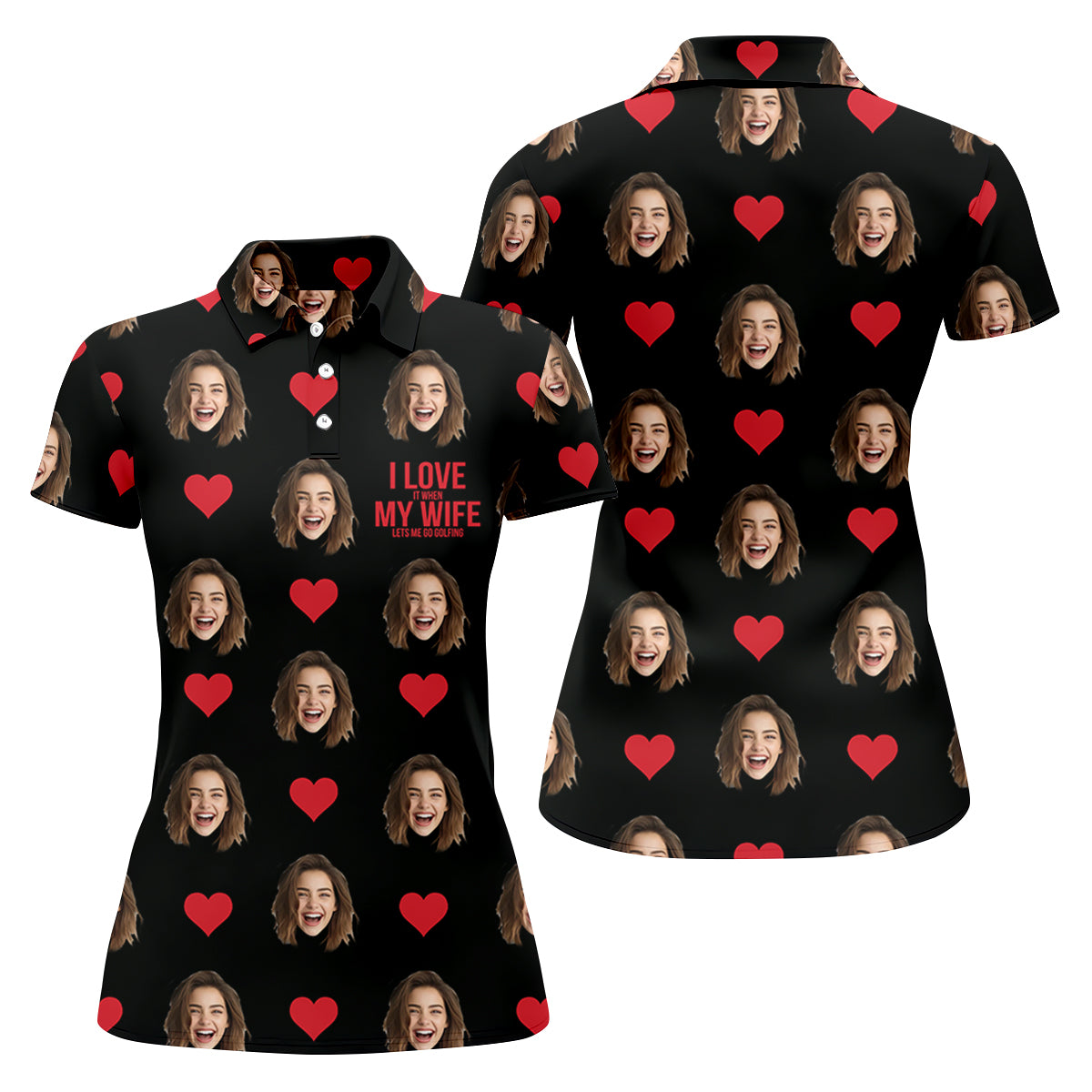I Love My Wife Custom Photo Black Golf Shirt, Valentines Golf Gift, Women Golf Top, Ladies Golf Polos