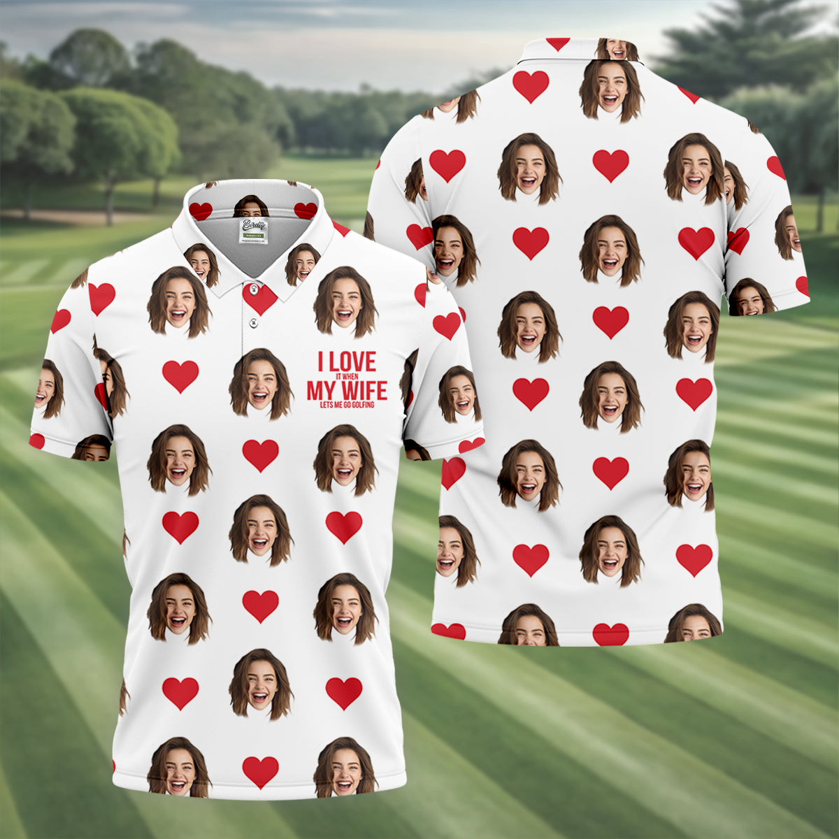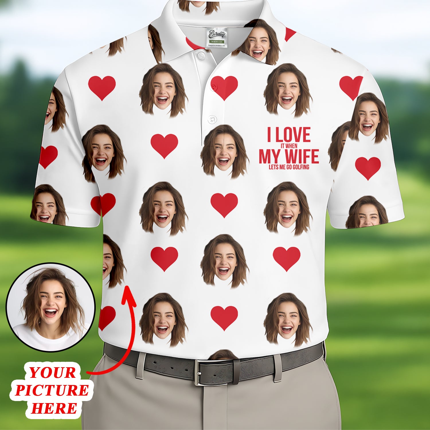 I Love It When My Wife Let Me Golfing Custom Photo White Golf Shirt, Valentines Golf Gift, Fun Golf Shirts For Men