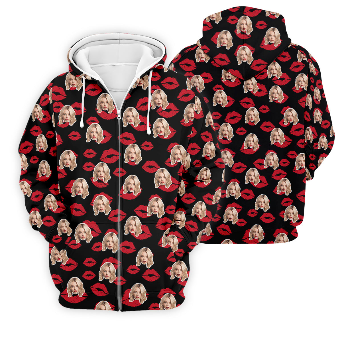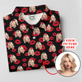 Kiss Lipstick Mark Custom Photo Golf Tops For Men, Valentines Golf Gift, Polo Shirts For Men