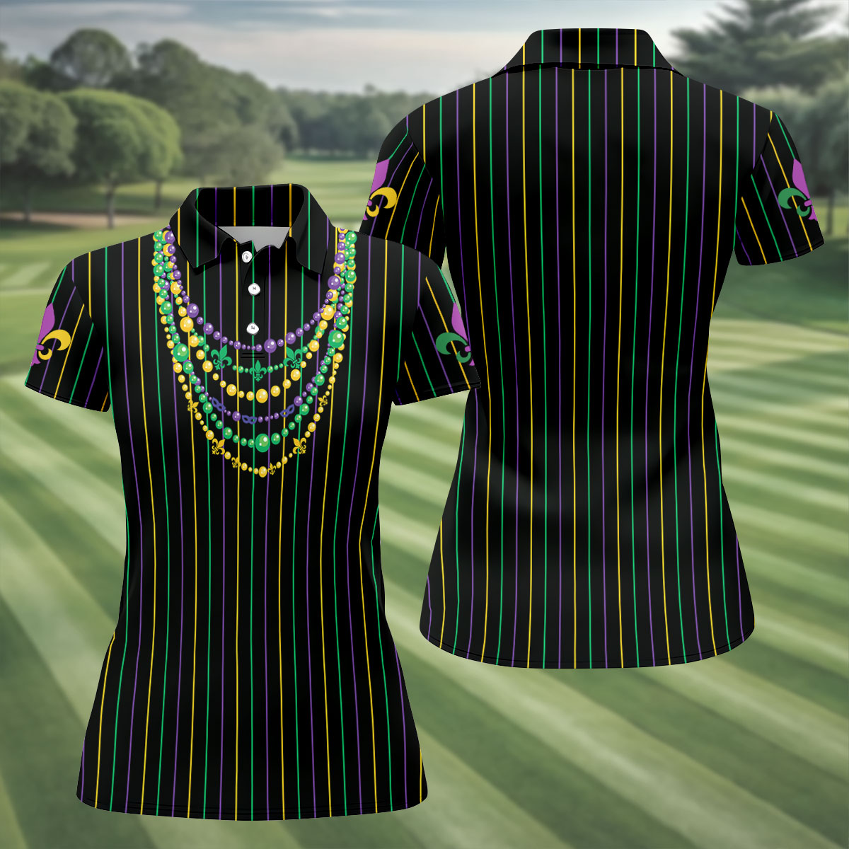 Whether you’re teeing off during Mardi Gras week, playing a themed tournament, or just looking for an excuse to bring festival vibes to the course — this shirt shows up ready to celebrate.