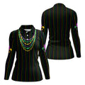 Mardi Gras Beads Necklaces Print Black Golf Shirt, Women's Golf Shirts, Ladies Golf Polos, Golf Shirt For Women