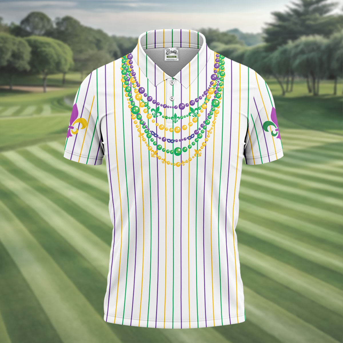 Whether you’re teeing off during Mardi Gras week, playing a themed tournament, or just looking for an excuse to bring festival vibes to the course — this shirt shows up ready to celebrate.