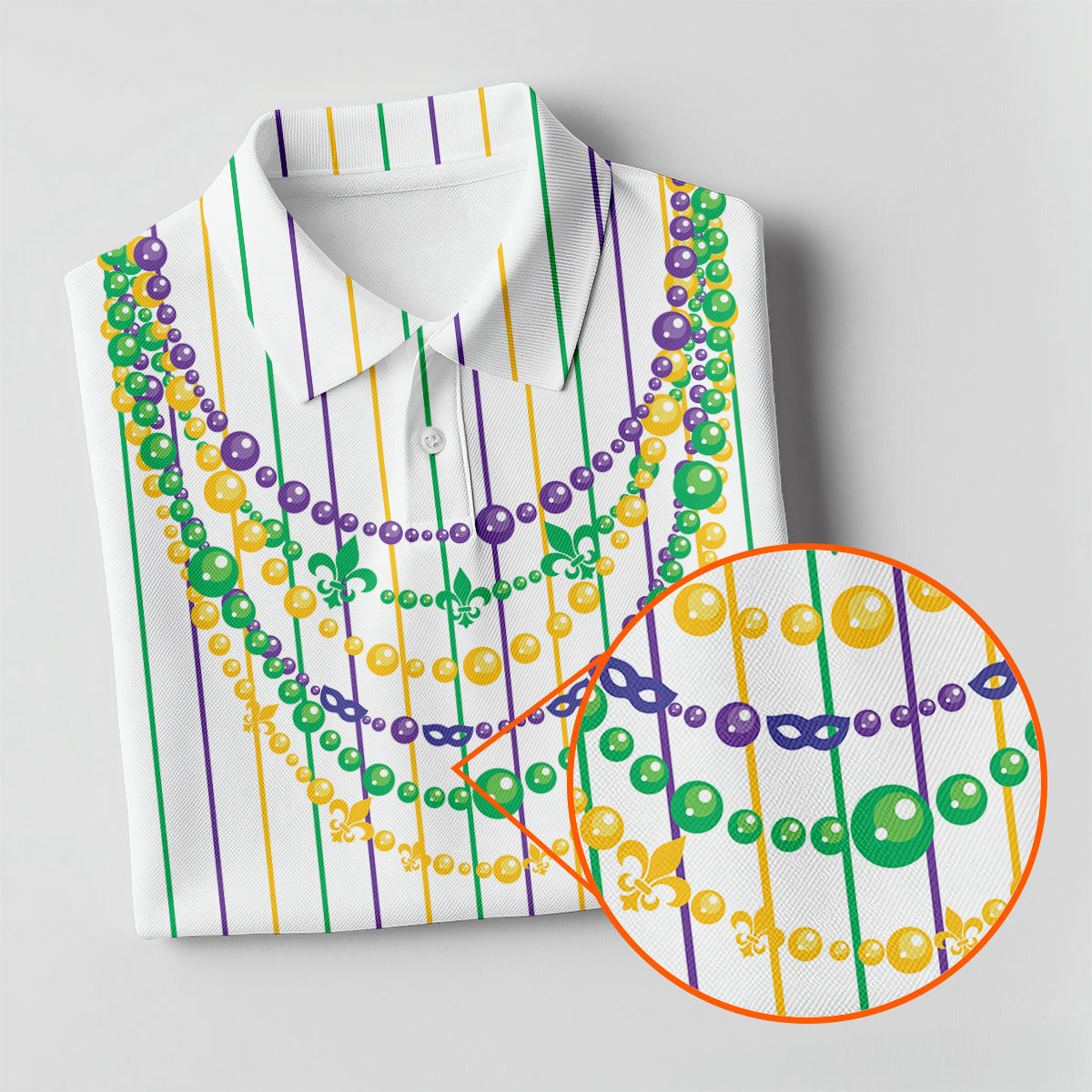 Mardi Gras Beads Necklaces Print White Golf Shirt, Golf Tops For Men, Polo Shirts For Men, Golf Shirts For Men