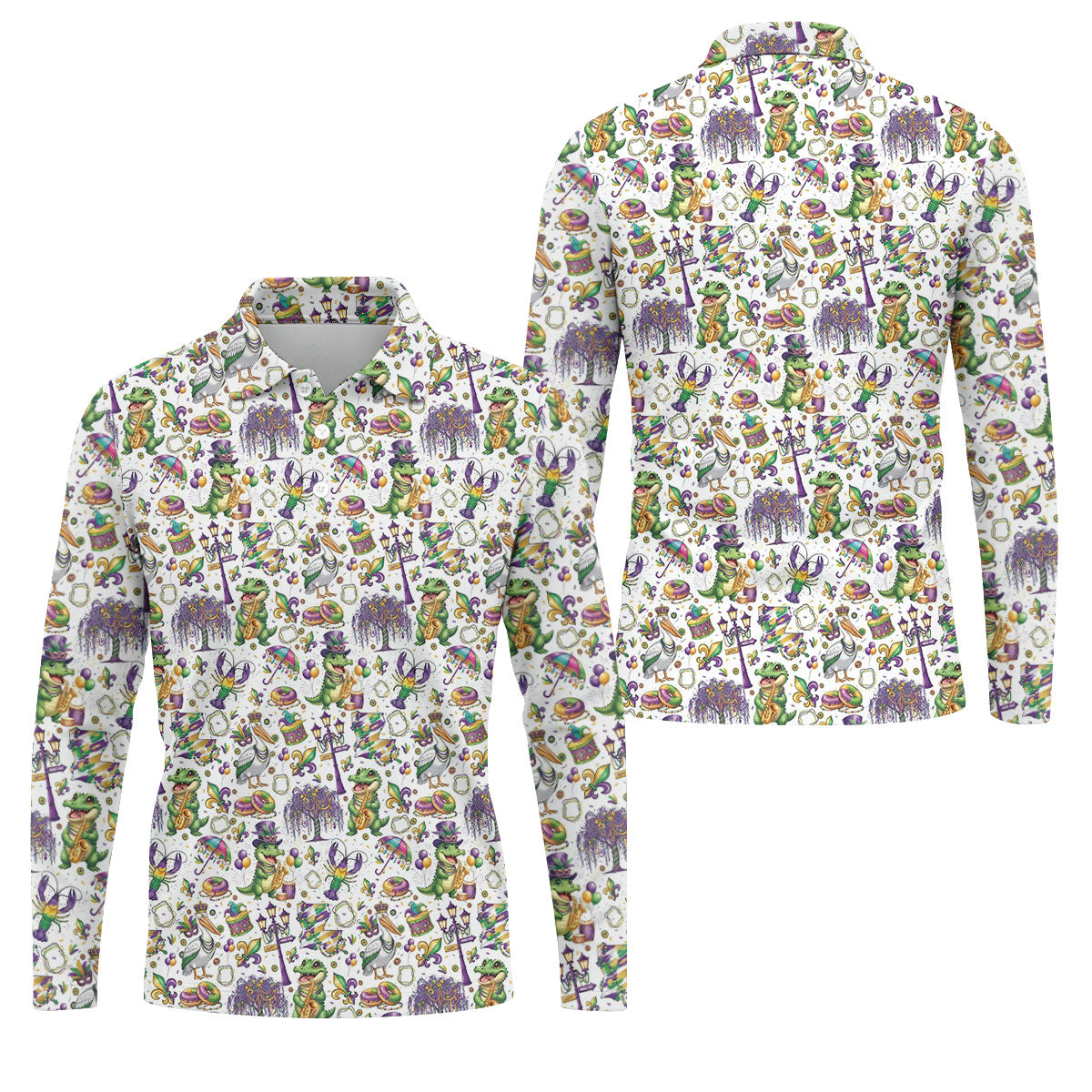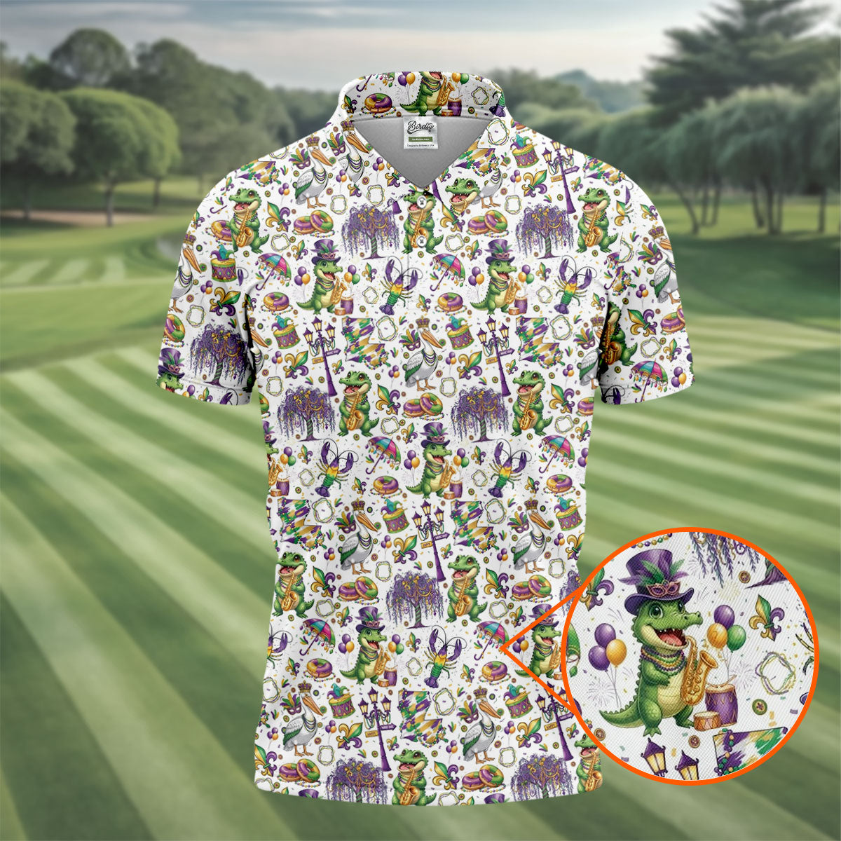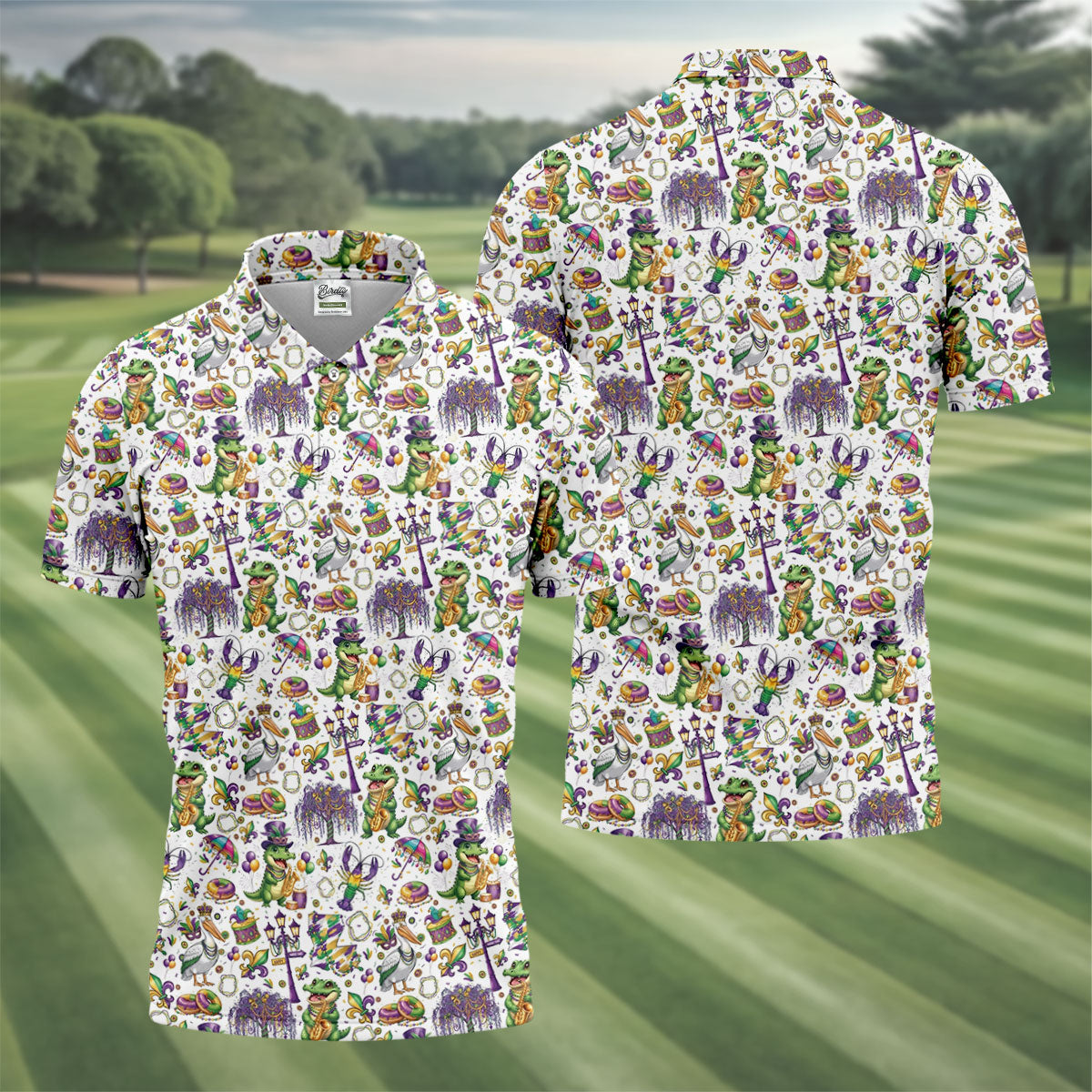 Our Mardi Gras golf shirts are made for players who’d rather turn heads than blend in. Designed for confidence, comfort, and a healthy dose of humor, each polo is your ticket to brighter fairways, louder laughs, and just enough distraction to keep your buddies guessing.