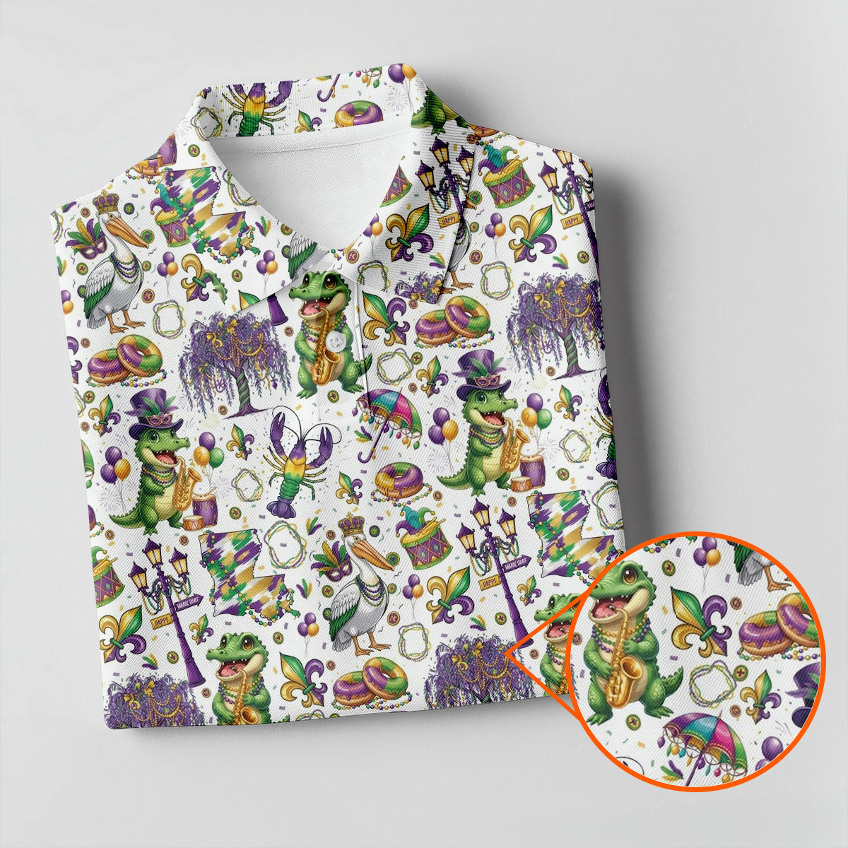 Mardi Gras Fleur De Lis Animal Band White Golf Shirt, Golf Tops For Men, Polo Shirts For Men