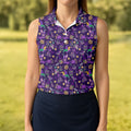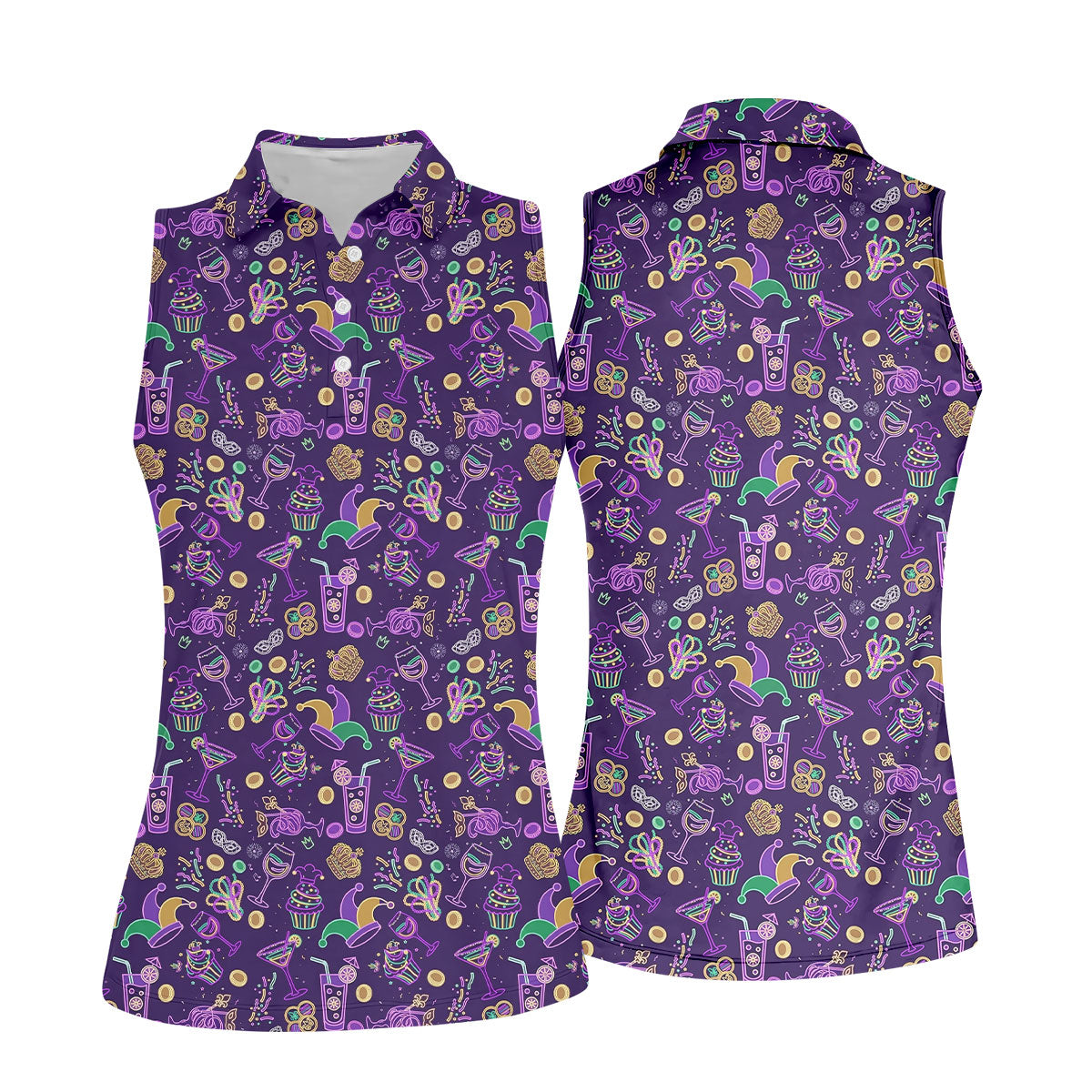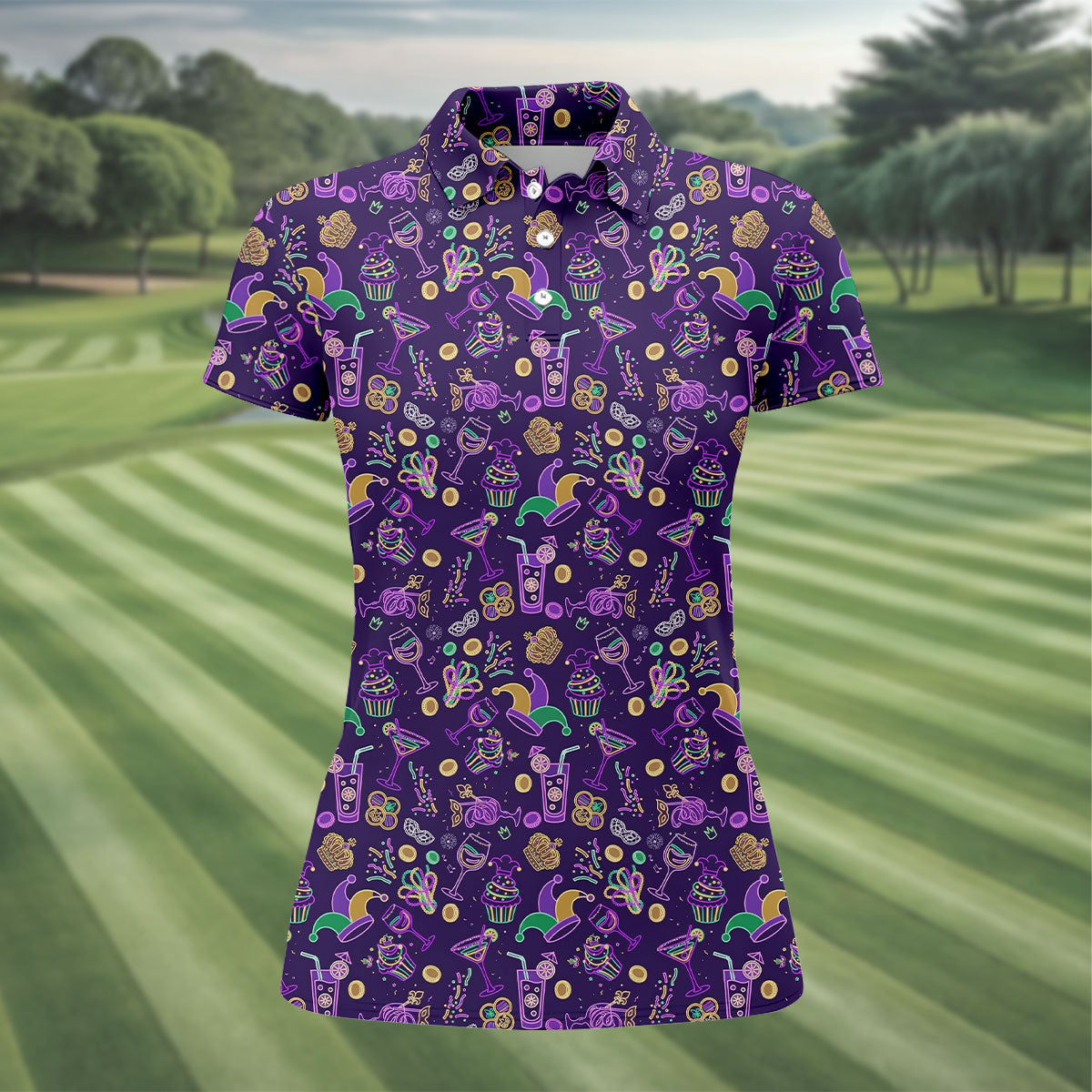 Mardi Gras Food Green Gold Purple Women's Golf Tops, Women's Golf Shirts, Ladies Golf Polos