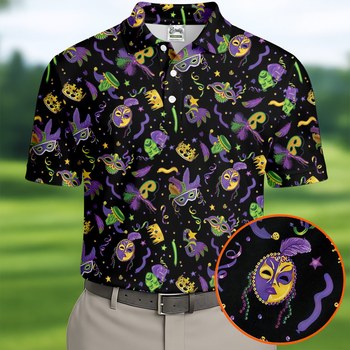 Whether you’re teeing off during Mardi Gras week, playing a themed tournament, or just looking for an excuse to bring festival vibes to the course — this shirt shows up ready to celebrate.