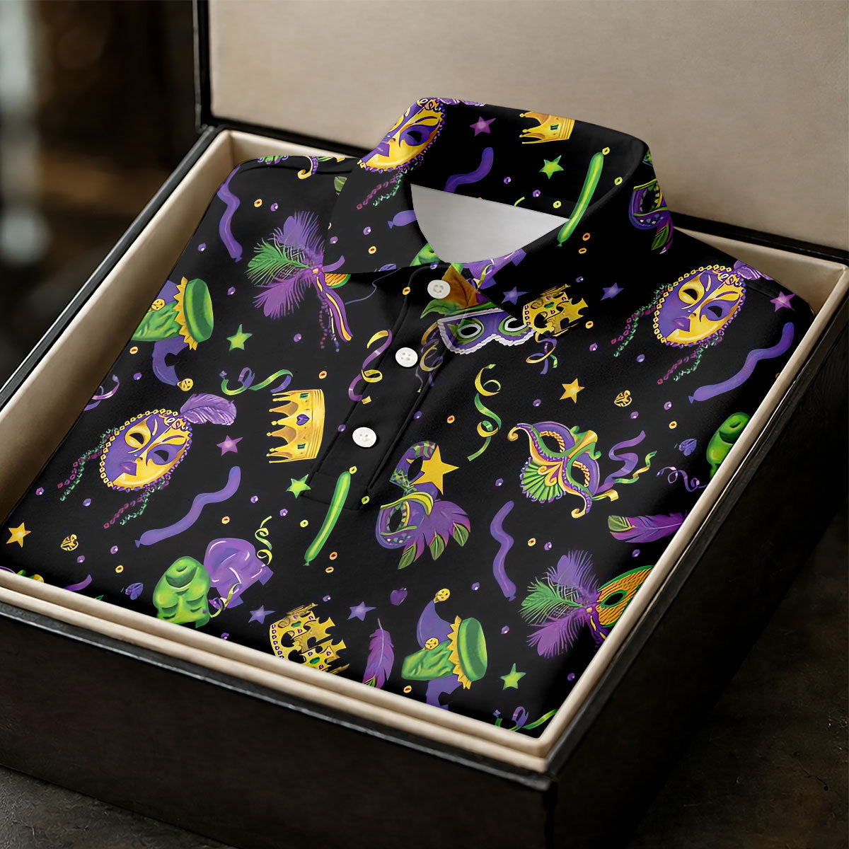 Our Mardi Gras golf shirts are made for players who’d rather turn heads than blend in. Designed for confidence, comfort, and a healthy dose of humor, each polo is your ticket to brighter fairways, louder laughs, and just enough distraction to keep your buddies guessing.