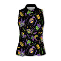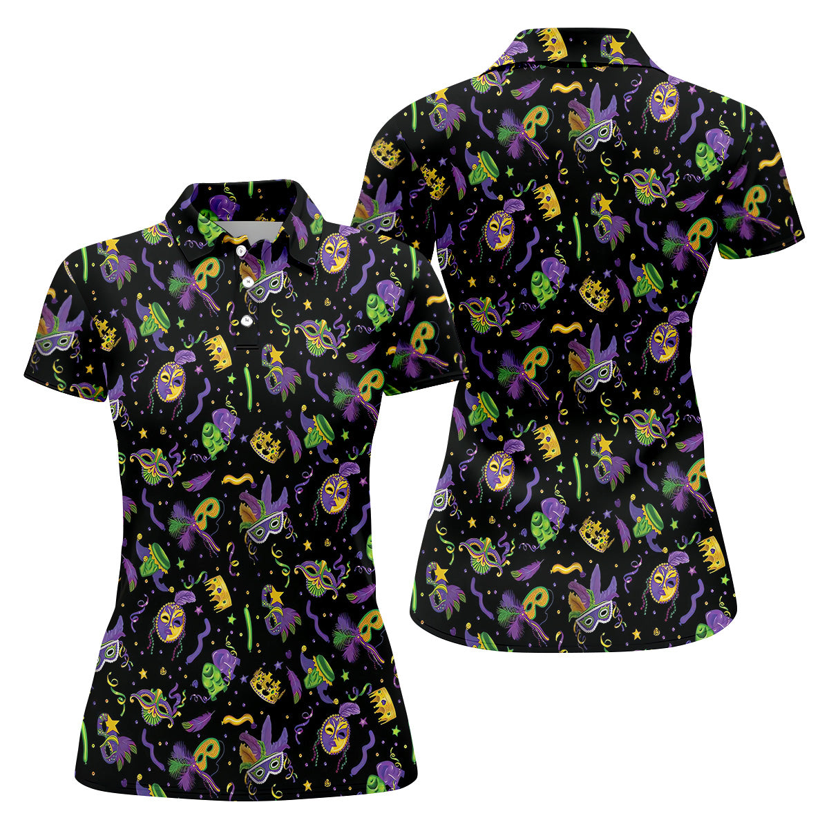 Mardi Gras Golf Sleeveless Polo Shirts Womens, Mardi Gras Black Golf Shirt, Ladies Golf Shirt