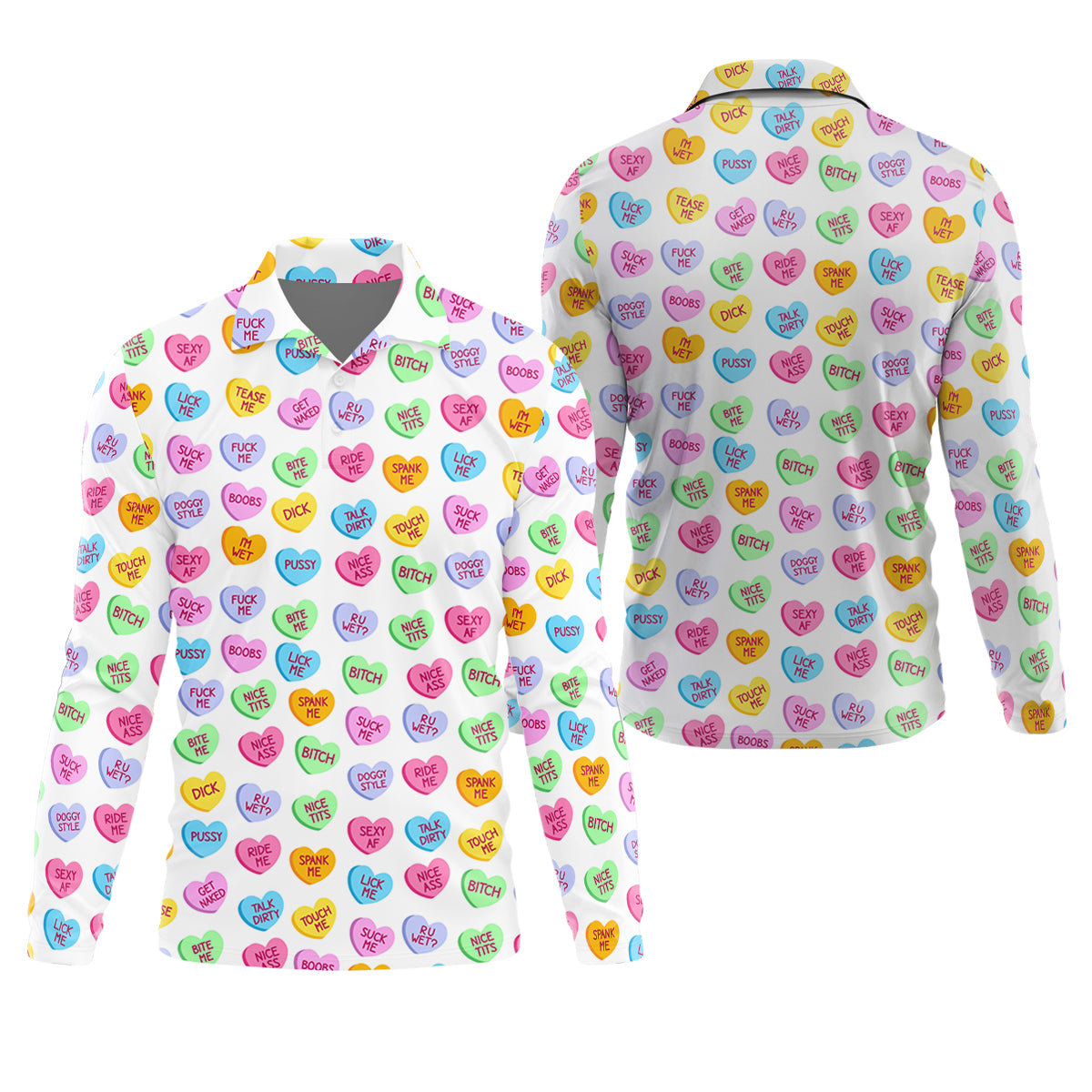 Naughty Conversation Hearts Fun Golf Shirts For Men, Valentines Golf Gift, Dirty Candy Heart Polo Shirts For Men