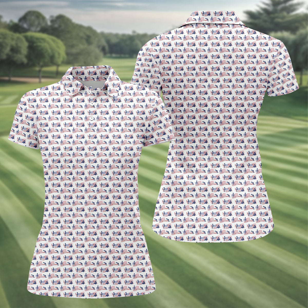 Naughty Position American Flag Pattern Patriotic Golf Shirts, 250th Anniversary Ladies Golf Shirts