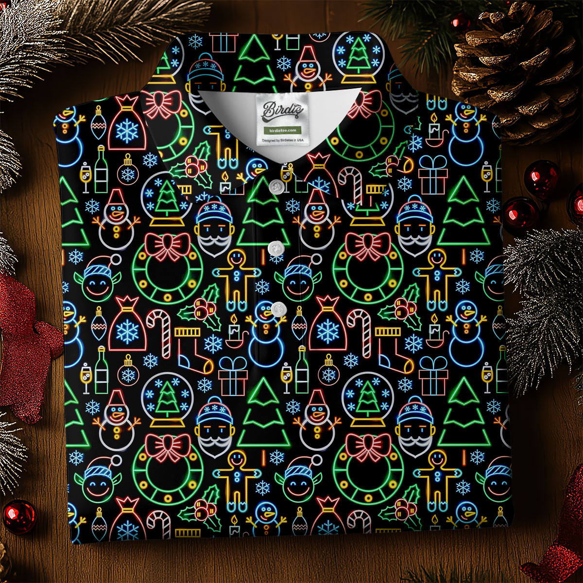 Neon Christmas Retro Style Men's Golf Polo Shirts, Christmas Golf Shirt, Polo Shirts For Men