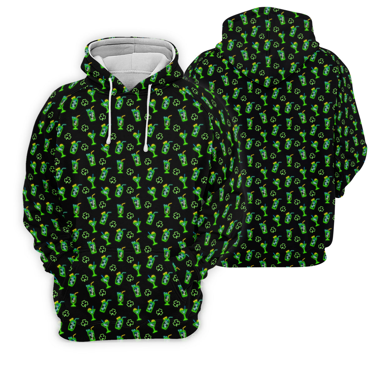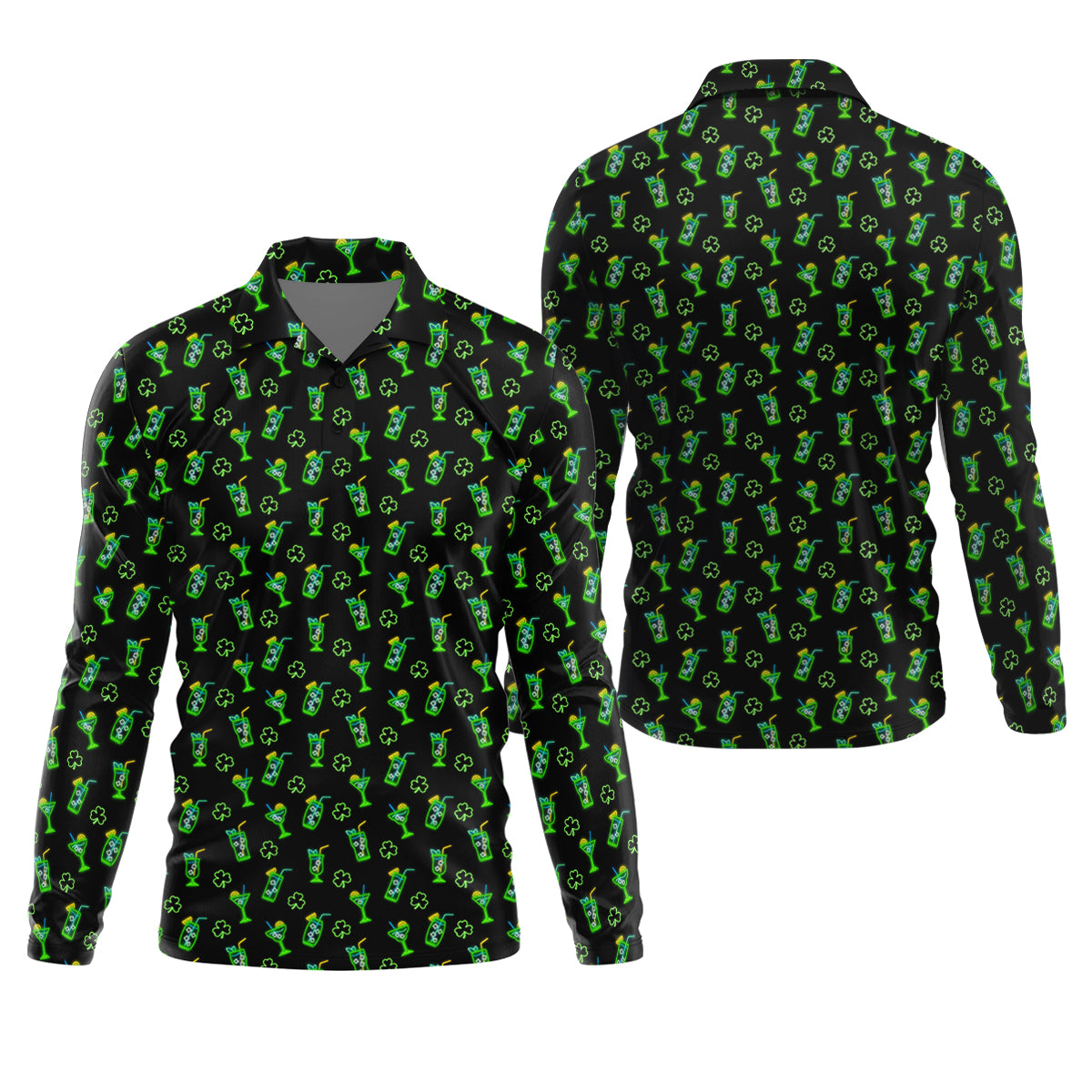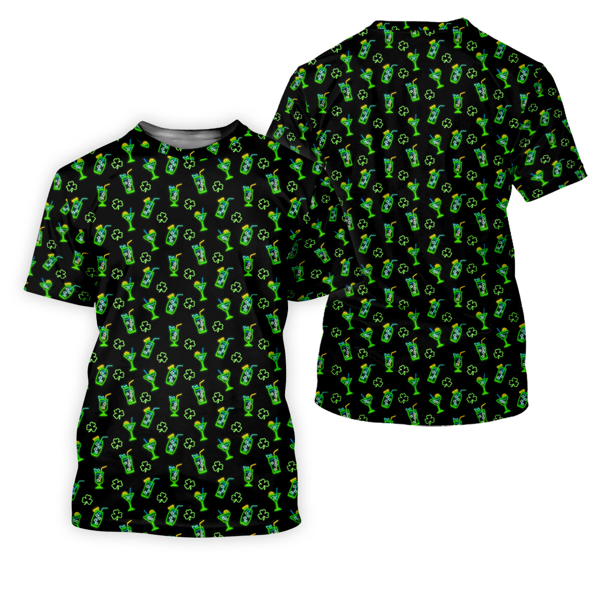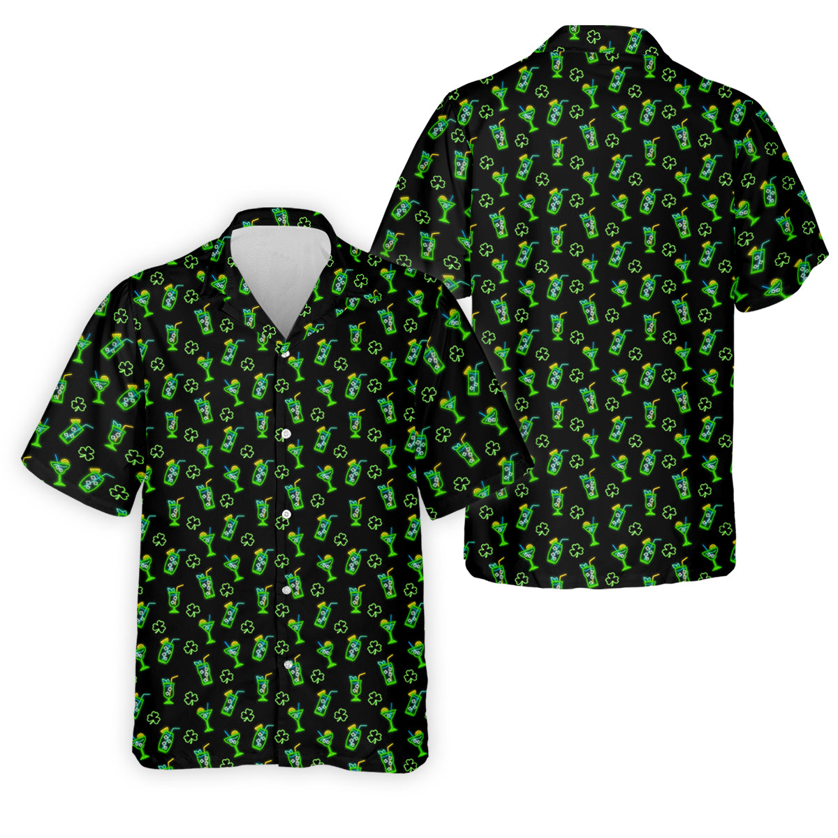 Neon Green Cocktails Three Leaf Clover St Patrick's Day Golf Shirt, Golf Gift For Men, Golf Shirts For Men