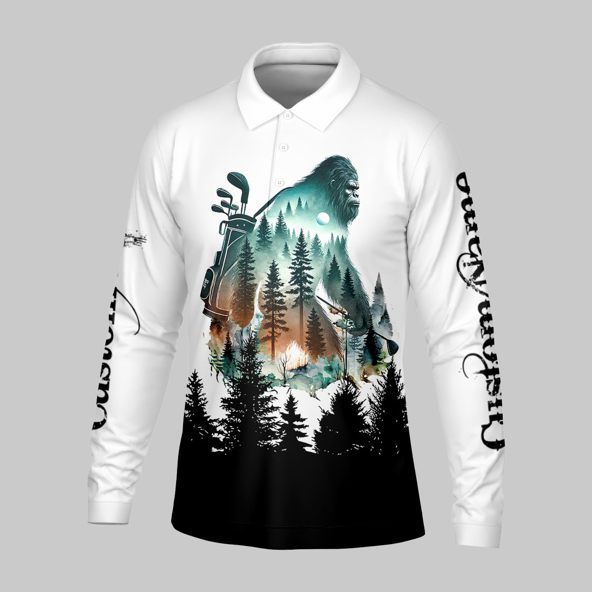 Not All Who Wander Are Lost Bigfoot Hunter Men's Golf Polo Shirt, Golf Lover Gifts, Funny Golf Shirt
