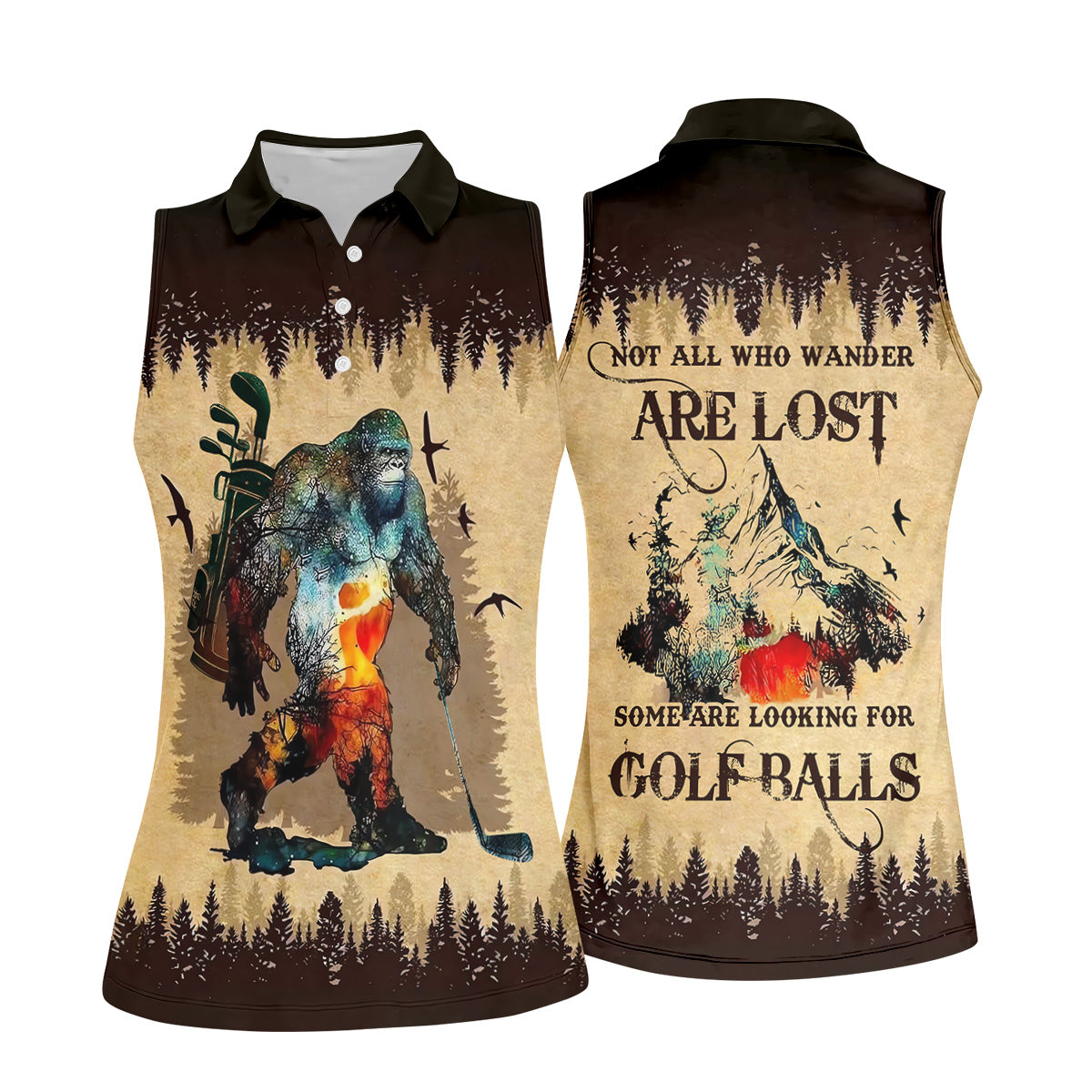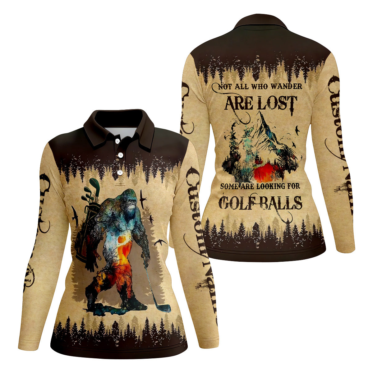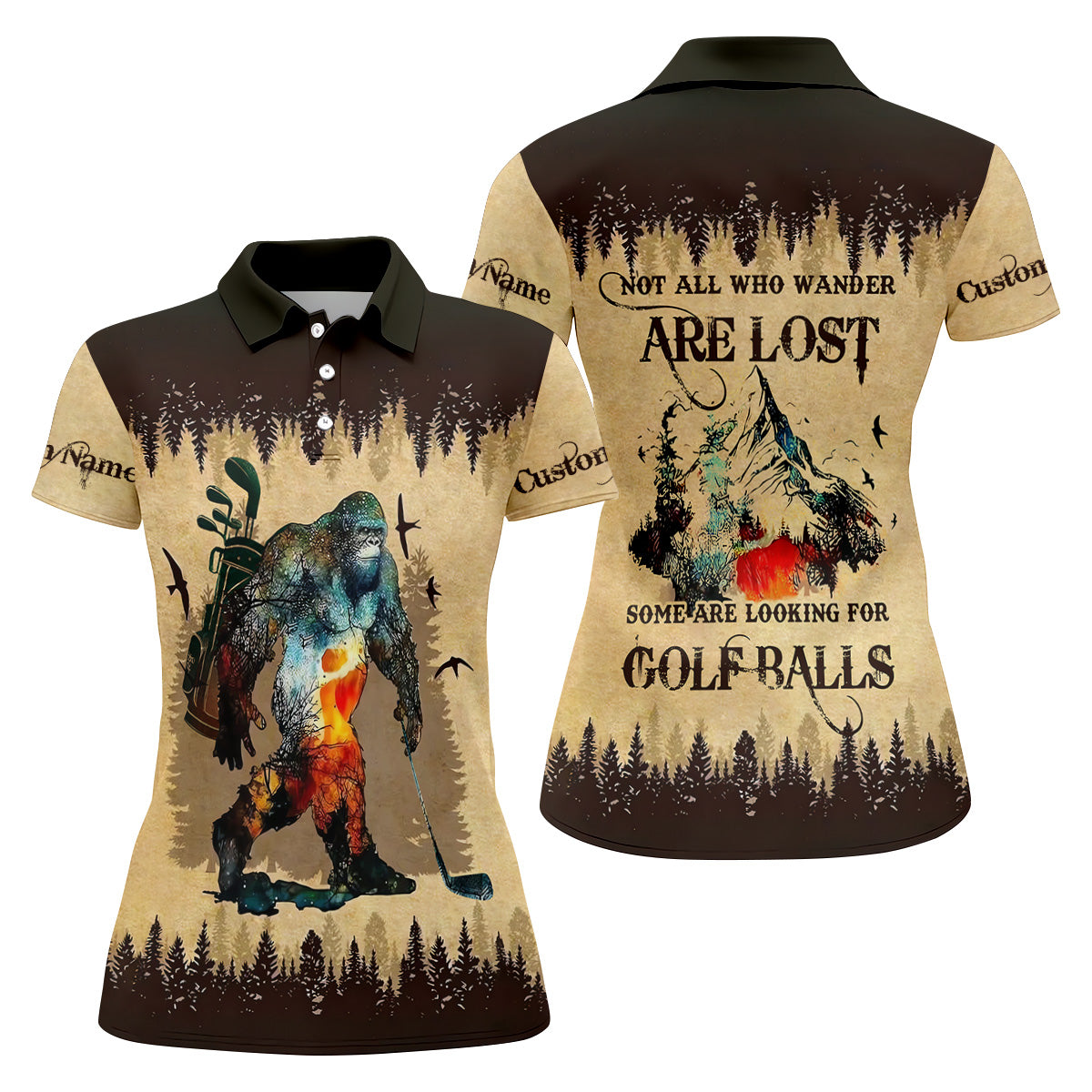 Not All Who Wander Are Lost Funny Bigfoot Brown Golf Shirt, Womens Golf Shirts, Ladies Golf Polos