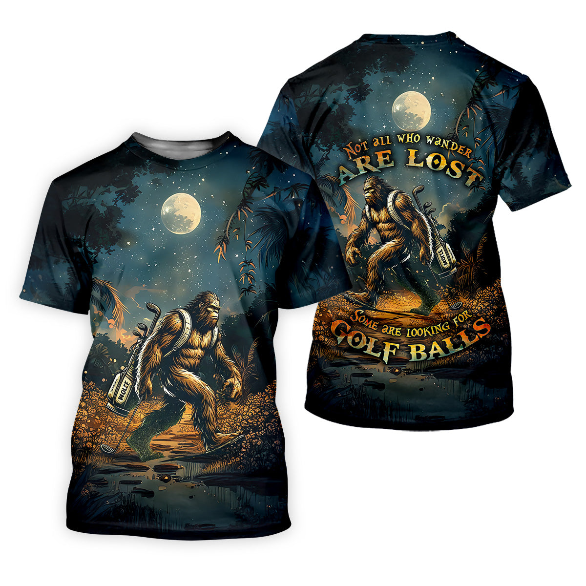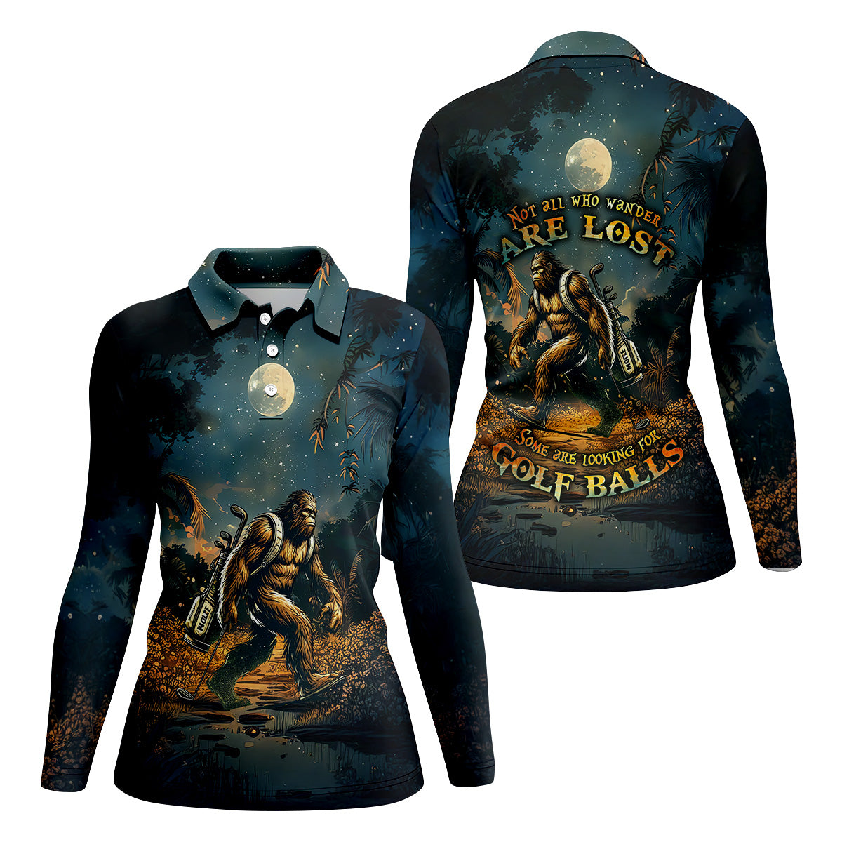 Not All Who Wander Are Lost Some Are Looking For Golf Balls Bigfoot Golf Shirt, Ladies Golf Shirts