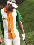 Orange And Green St. Patrick's Day Lucky Clover Hawaiian Golf Shirt, Tropical Vibe Men's Golf Shirt