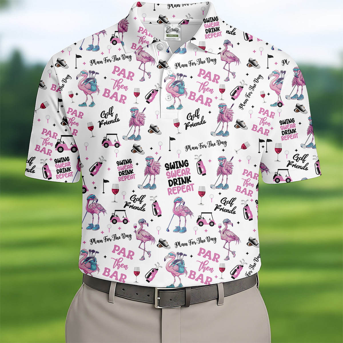 Par Then Bar Flamingo Funny Men Polo Shirt, Fun Golf Polos For Men, Golf Shirts, Dad Golf Gift