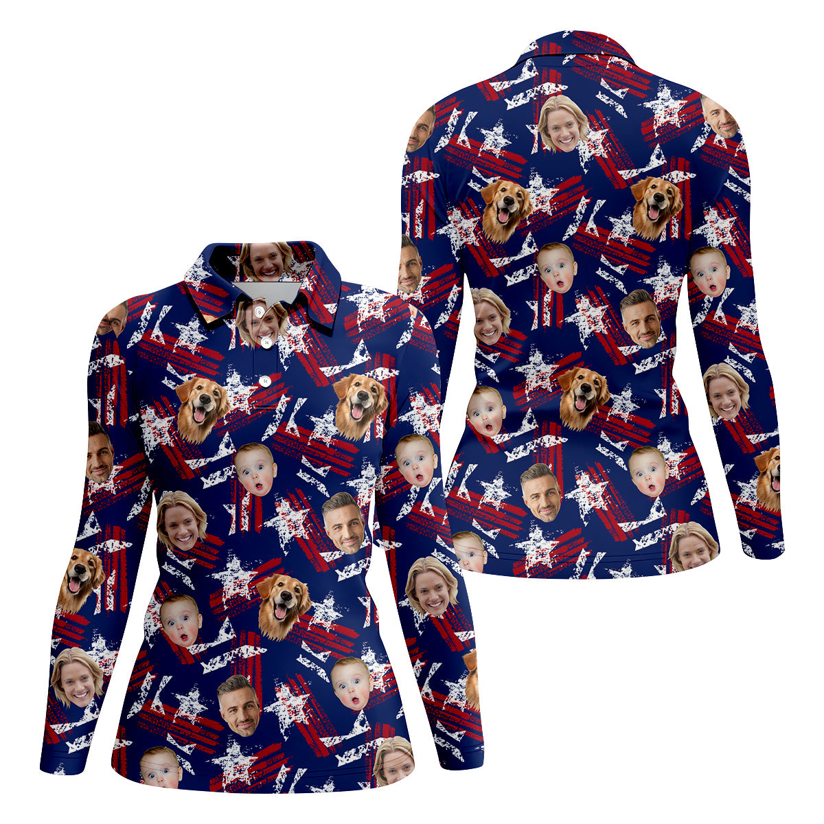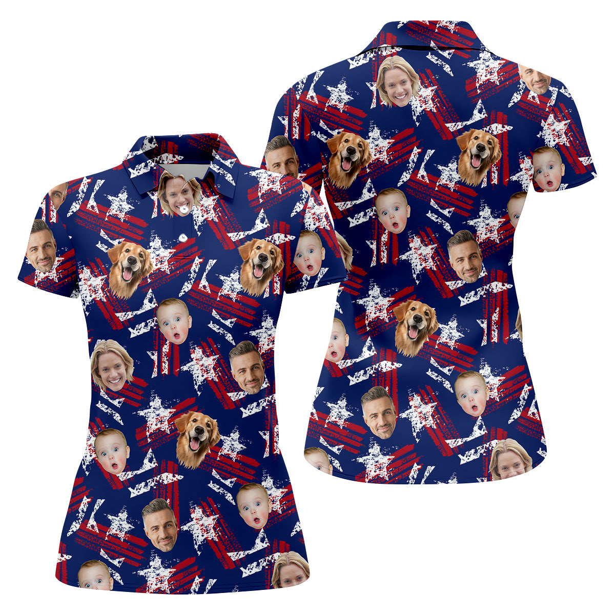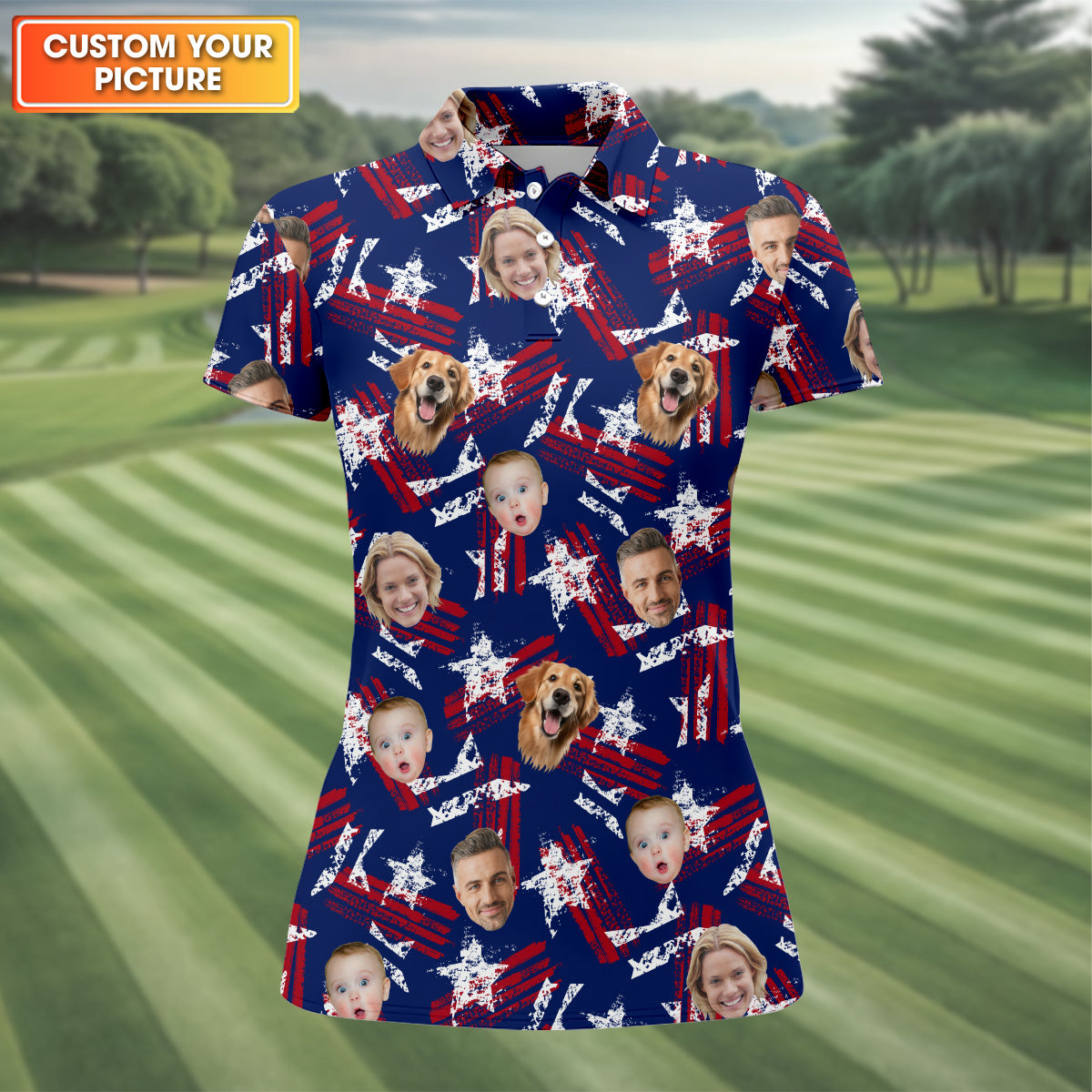 Custom Face Shirt, Patriotic Golf Polos, Golf Tops For Women, USA Golf Polo, Women's Golf Polo Shirt