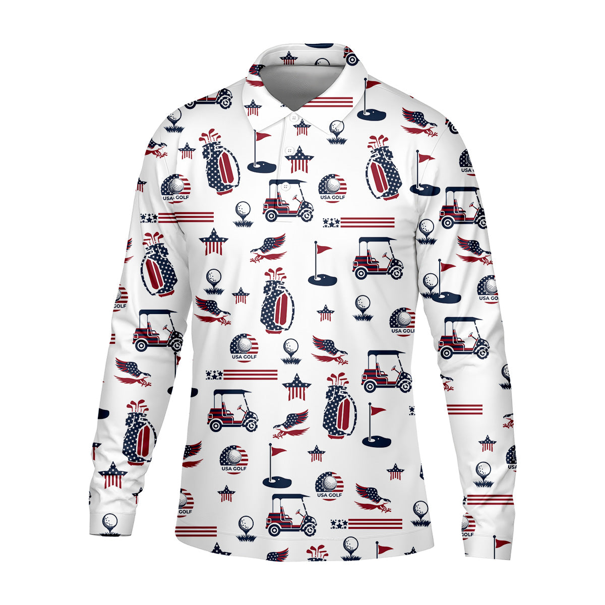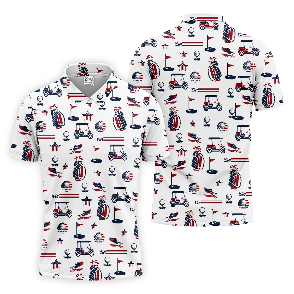 Patriotic USA Men's Golf Polo Shirt, Men's 4th Of July Shirts, USA Golf Shirt, Gifts For Golfing Dad