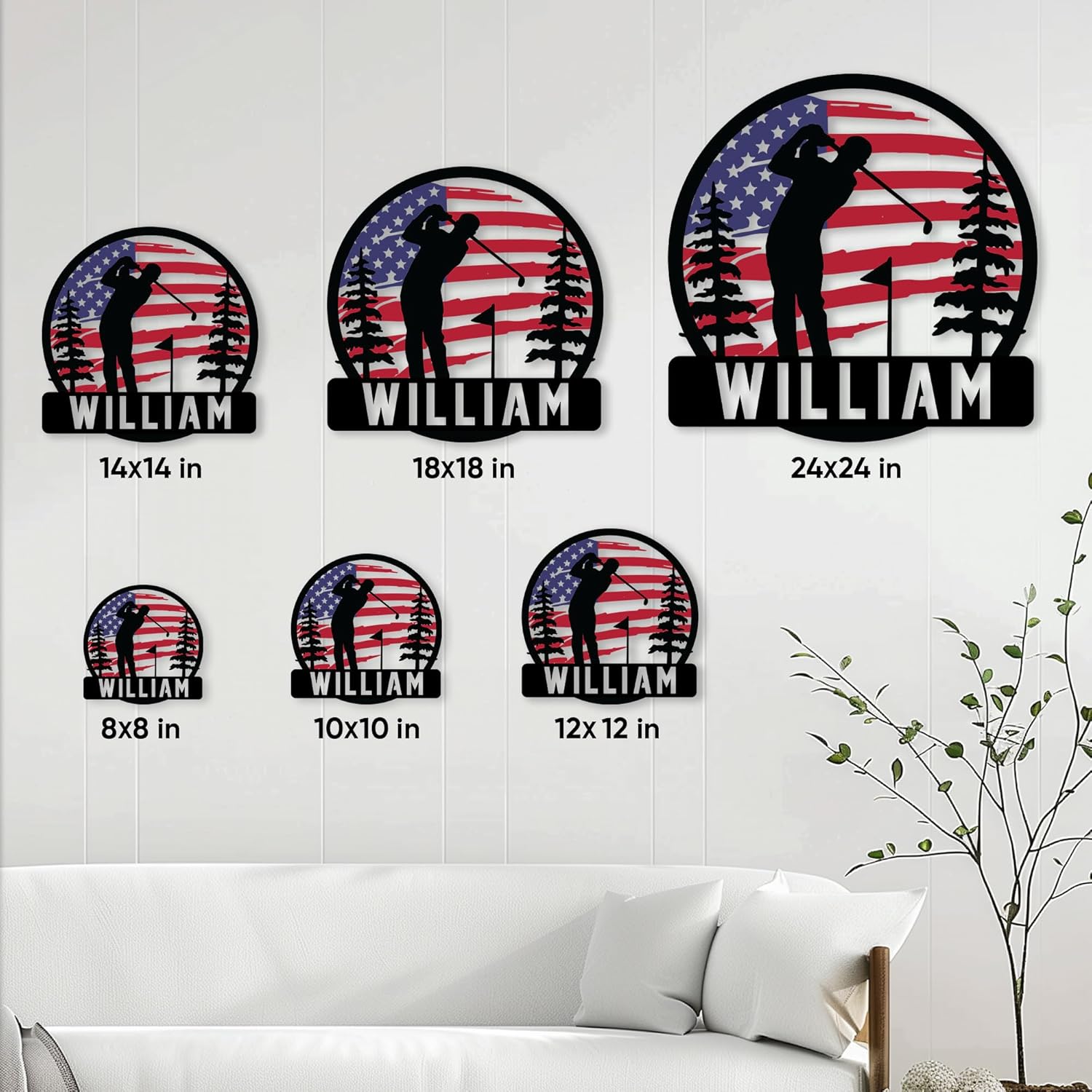 Personalized American Flag Golf Metal Sign, Metal Golf Wall Art, Christmas Golf Gift