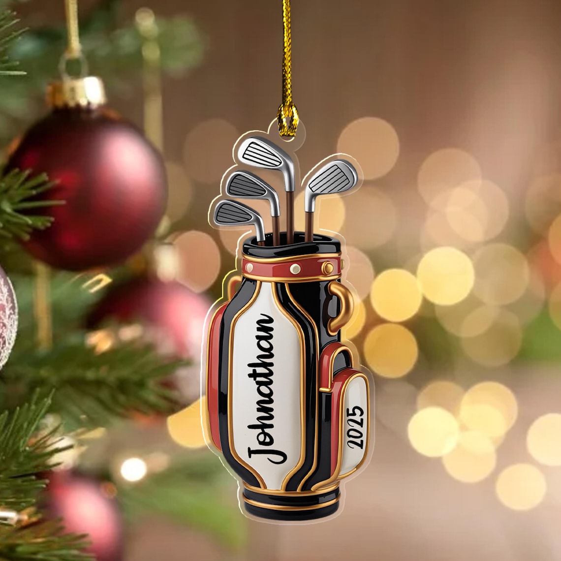 Personalized Golf Bag Xmas Ornament, Golf Keychain, Golf Accessories, Christmas Golf Gift