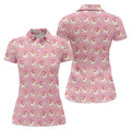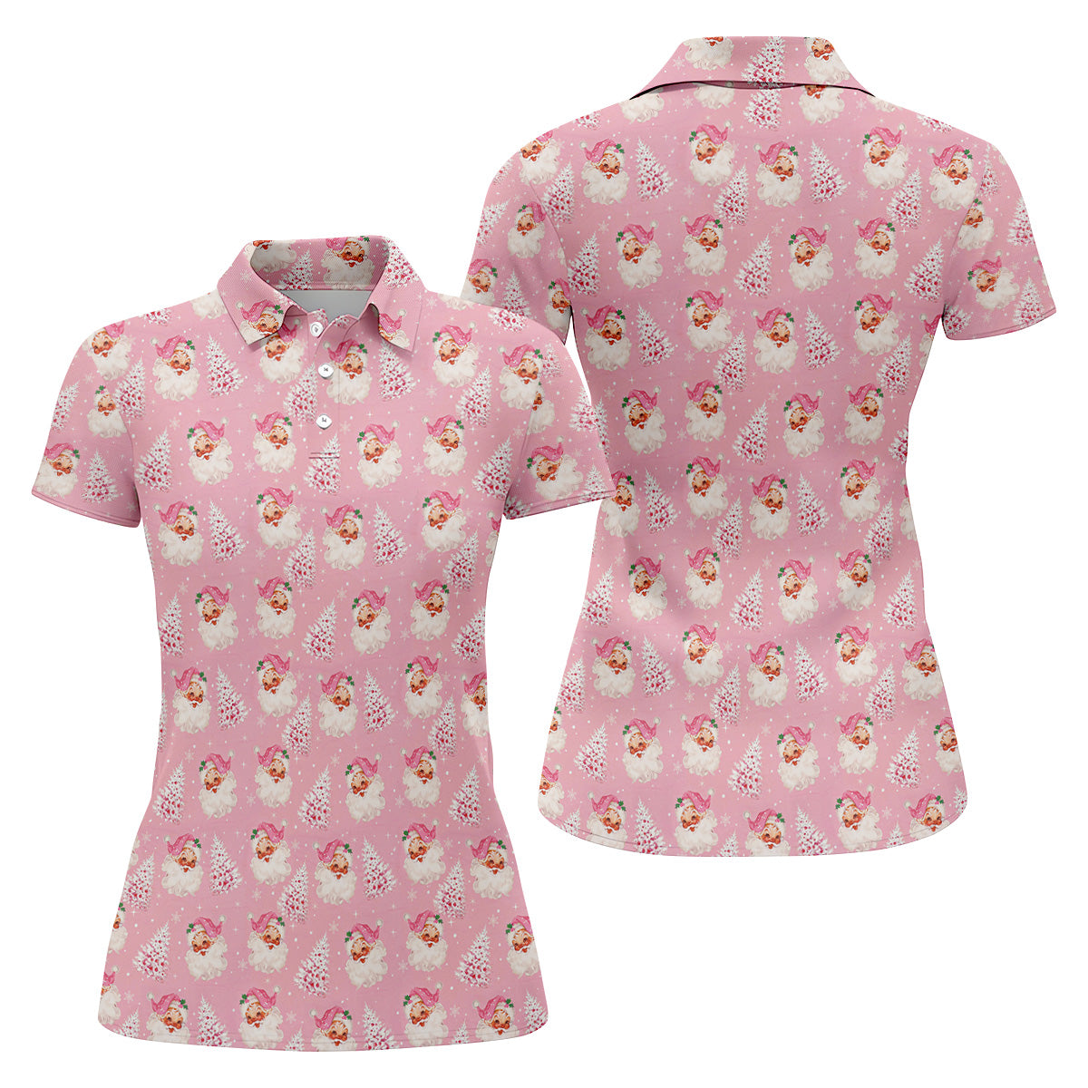 Pink Xmas Tree Santa Claus Pattern Christmas Golf Shirt, Women's Golf Tops, Golf Gift For Ladies