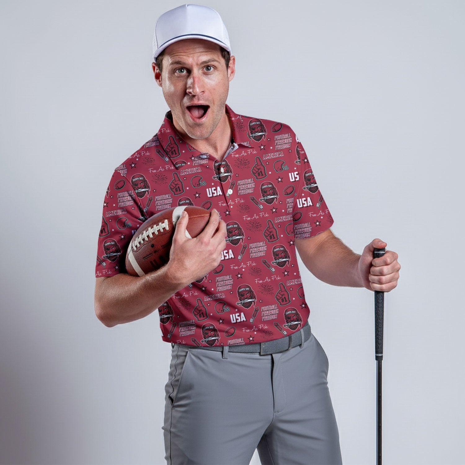 Pirate Character Red Sport Polo, American Football League Gift Ideas For Football Fans