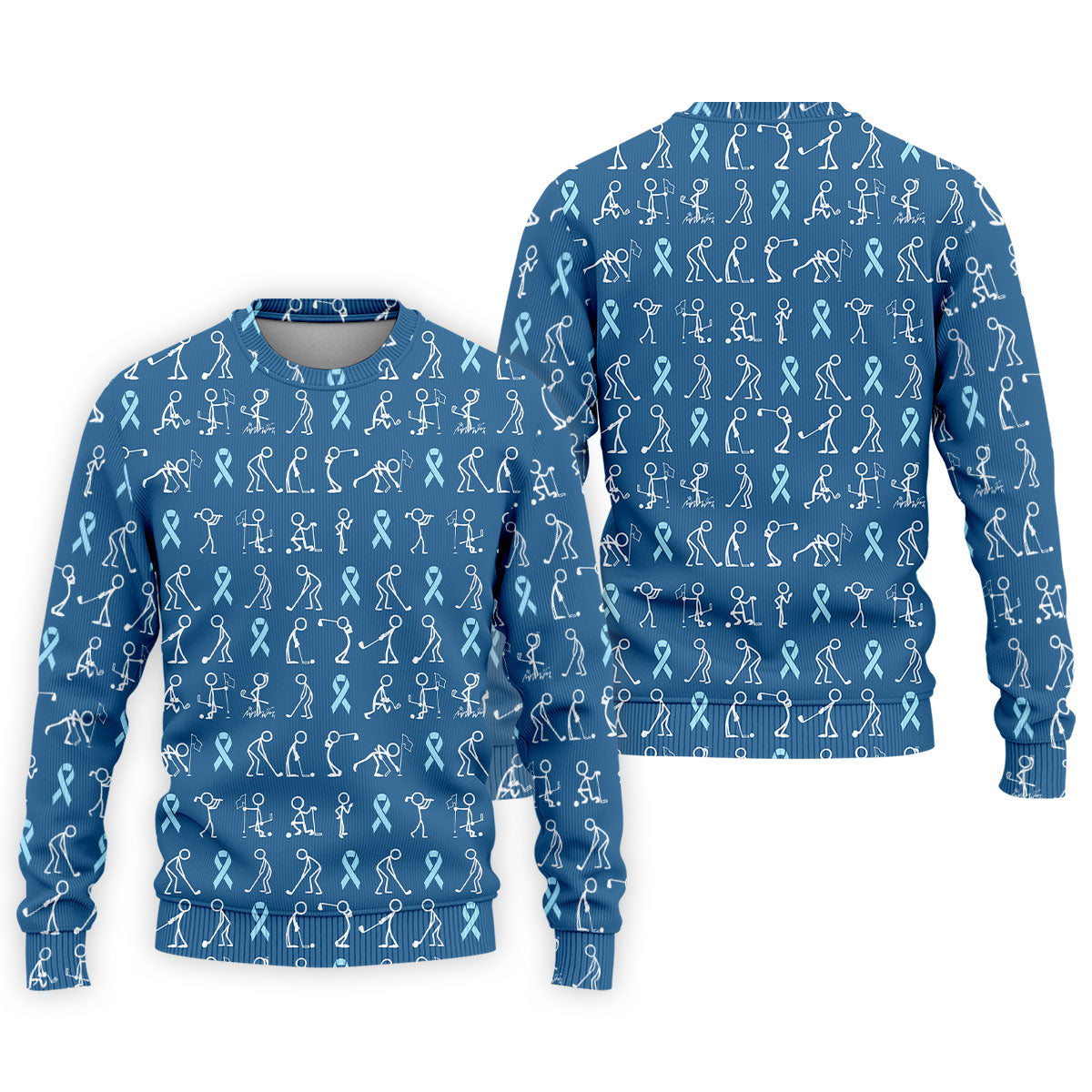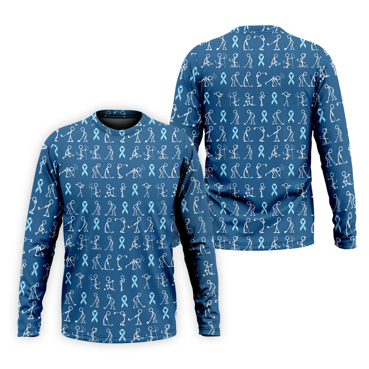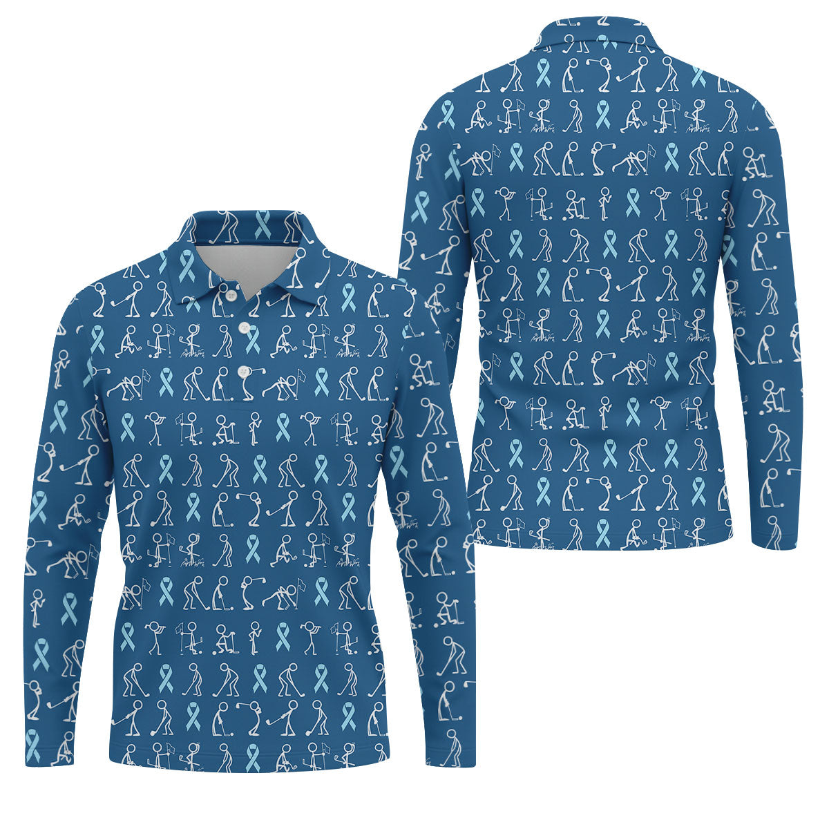 Prostate Cancer Blue Ribbon Stick Figure Shirt, Cancer Survivor Shirt, Cancer Awareness Shirt, Men's Golf Polo