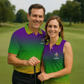 Mardi Gras Purple Gold Green Blended Color Golf Ball Pattern Golf Tops For Men, Polo Shirts For Men