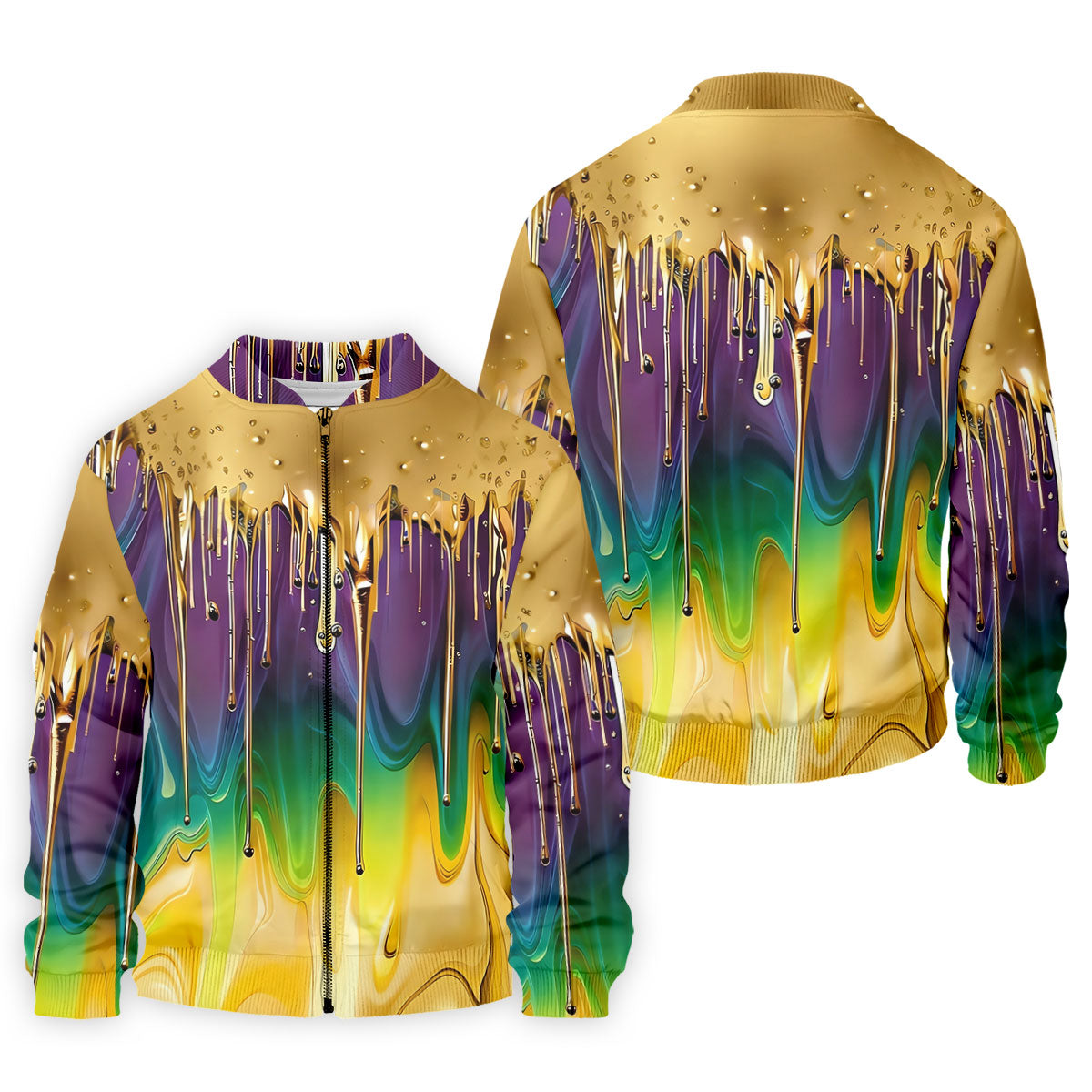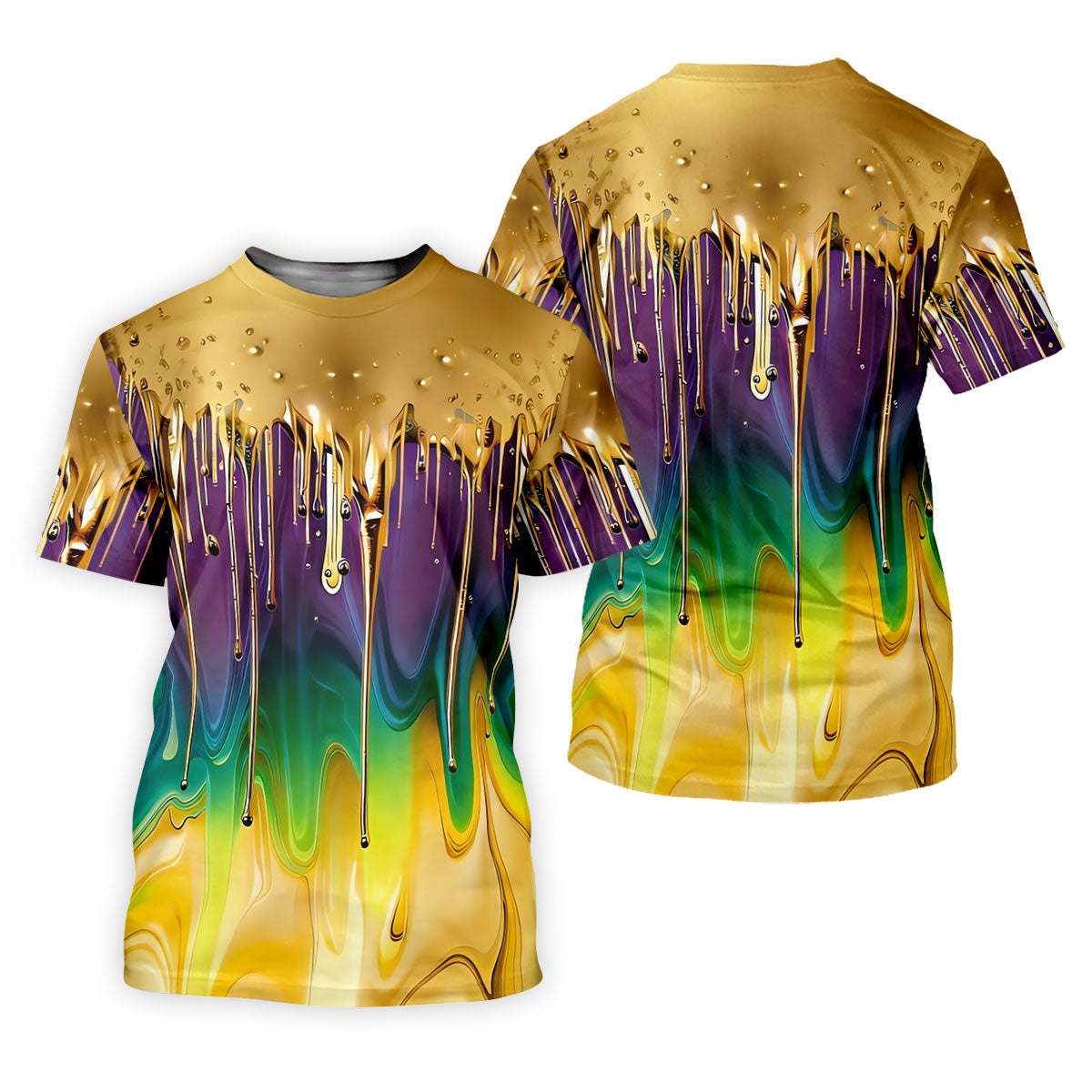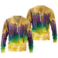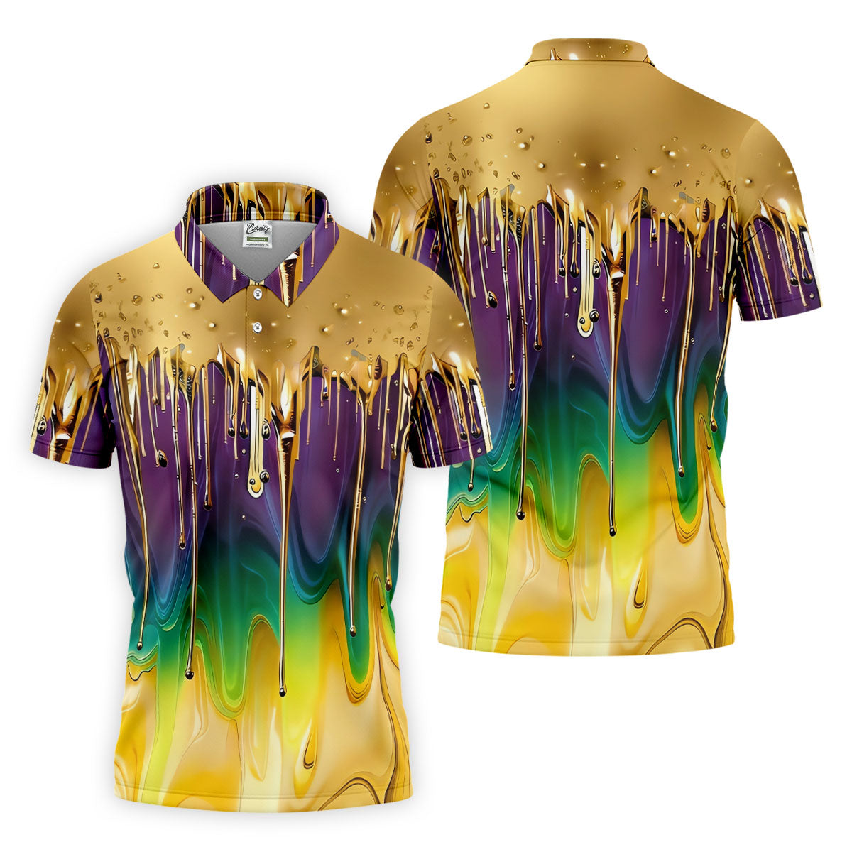 Purple Green Gold Dripping Effect Mardi Gras Golf Shirt, Polo Shirts For Men, Golf Shirts For Men