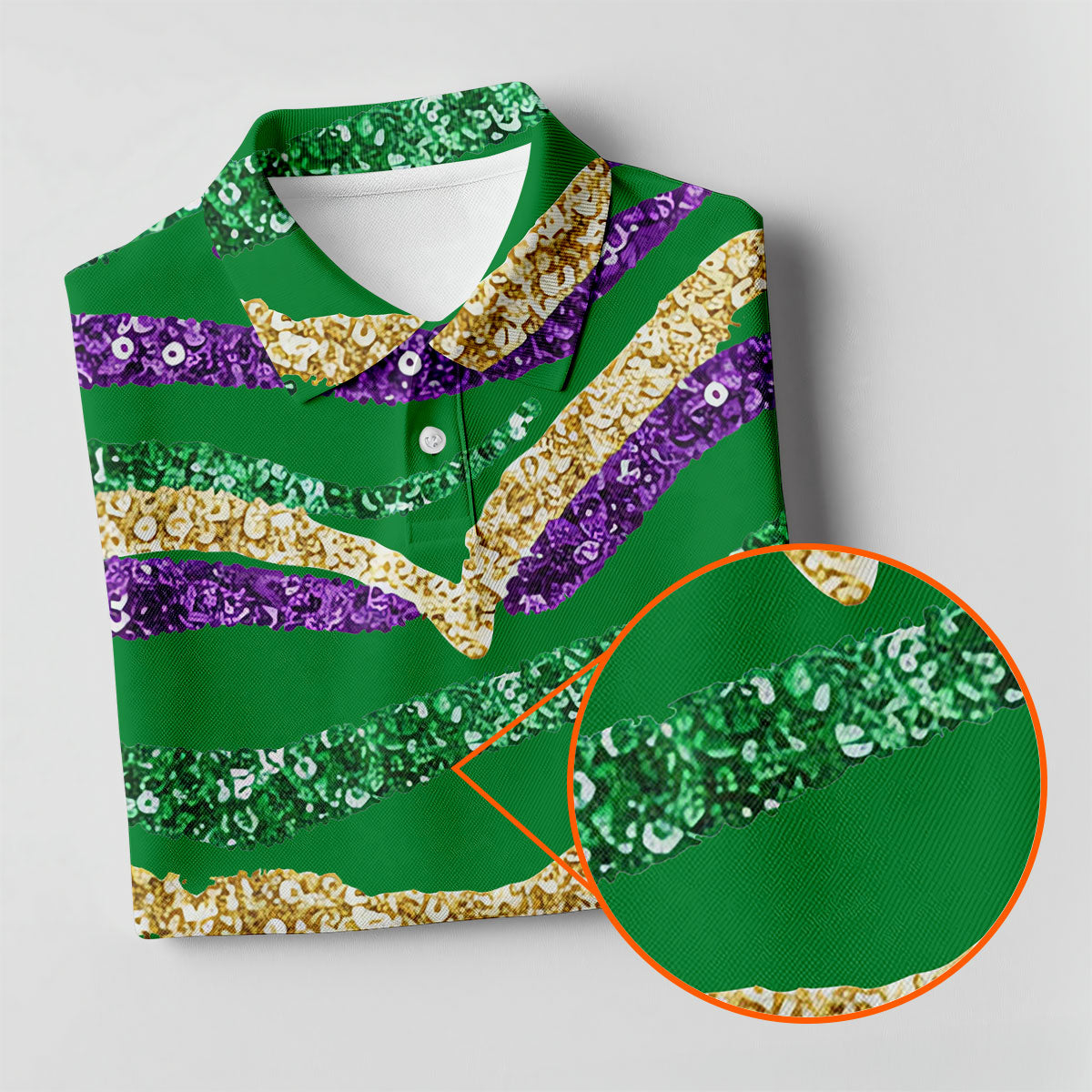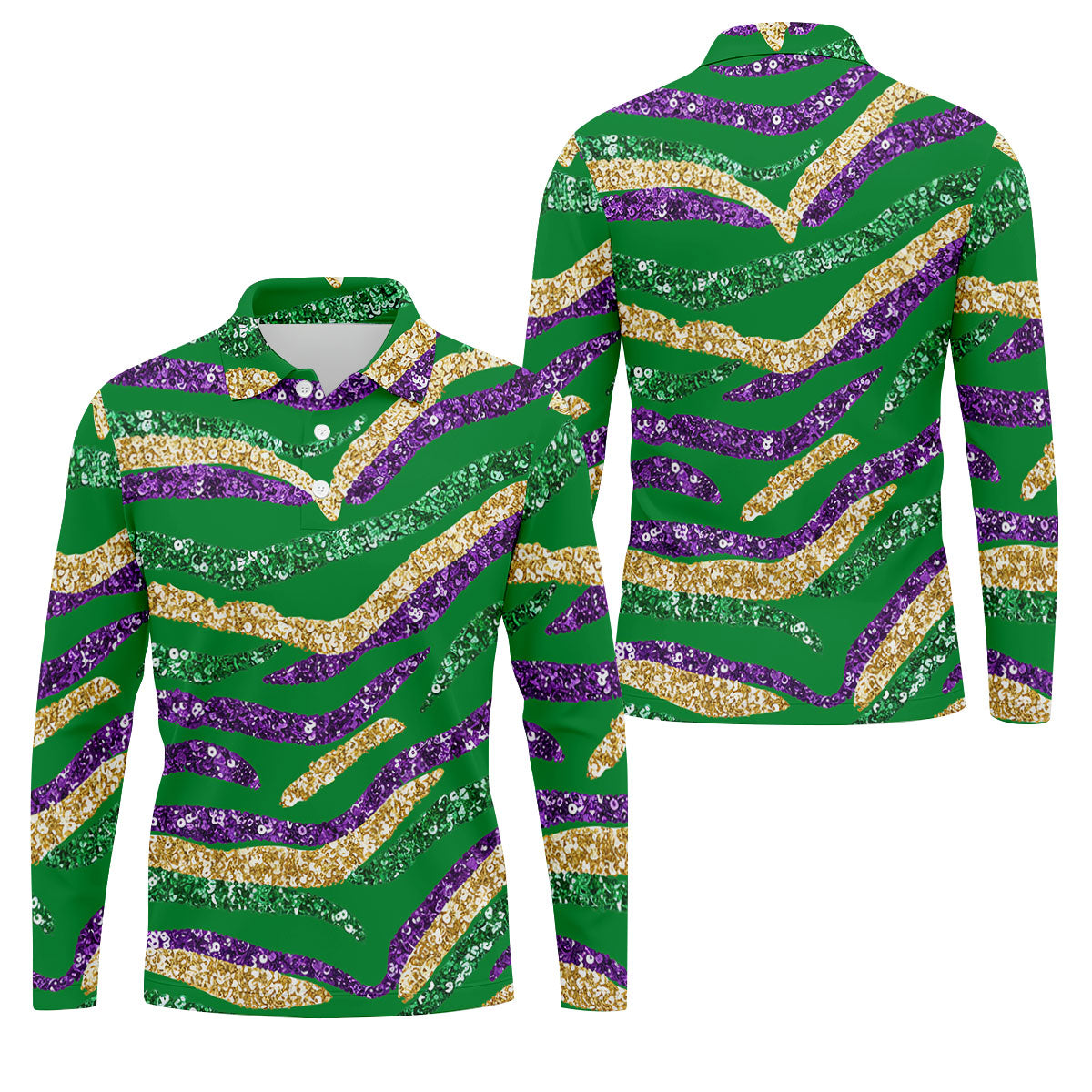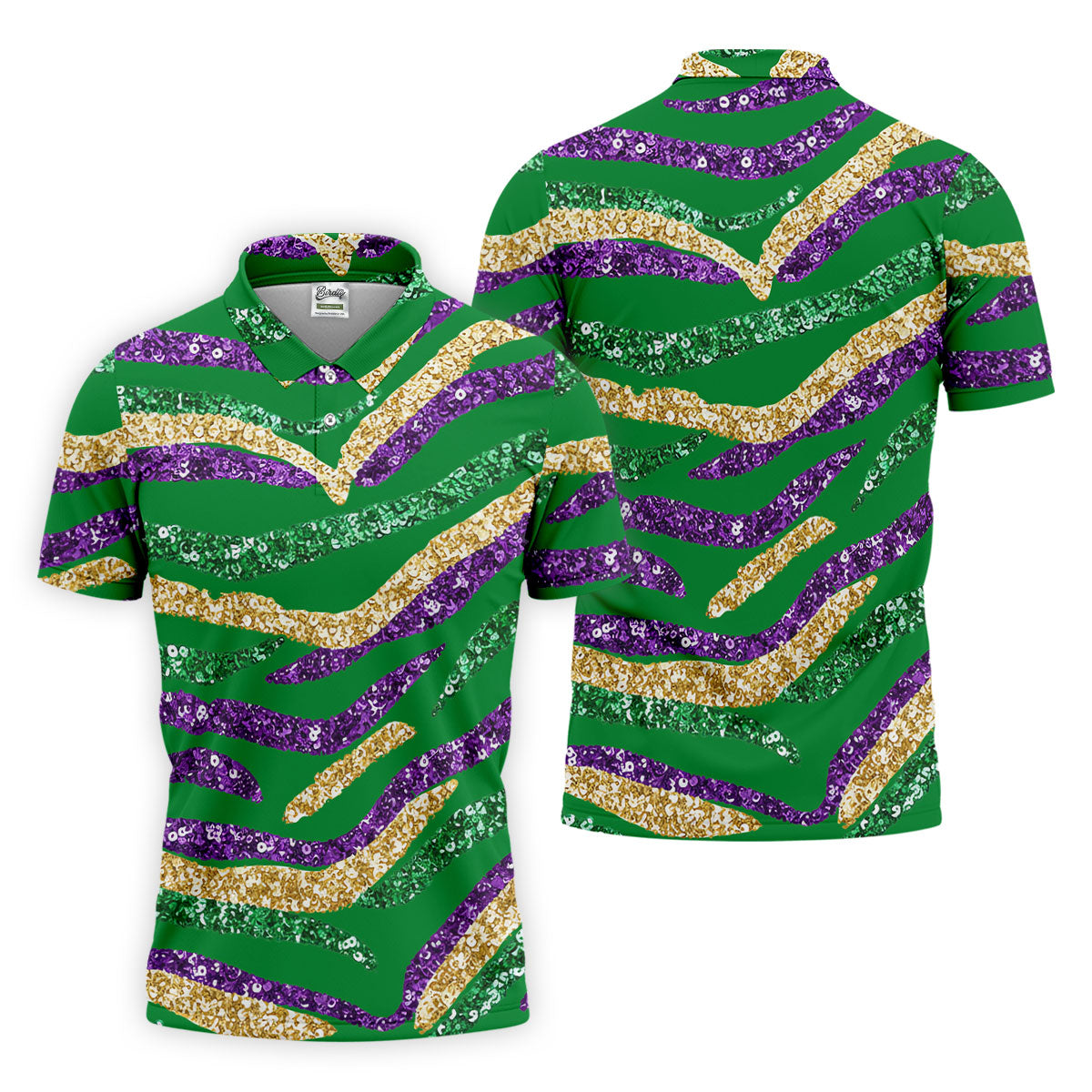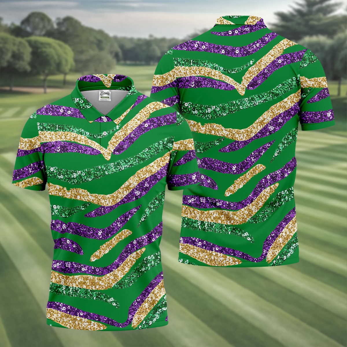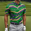 Purple Green Gold Sequin Pattern Green Golf Shirt, Mardi Gras Golf Shirt, Polo Shirts For Men