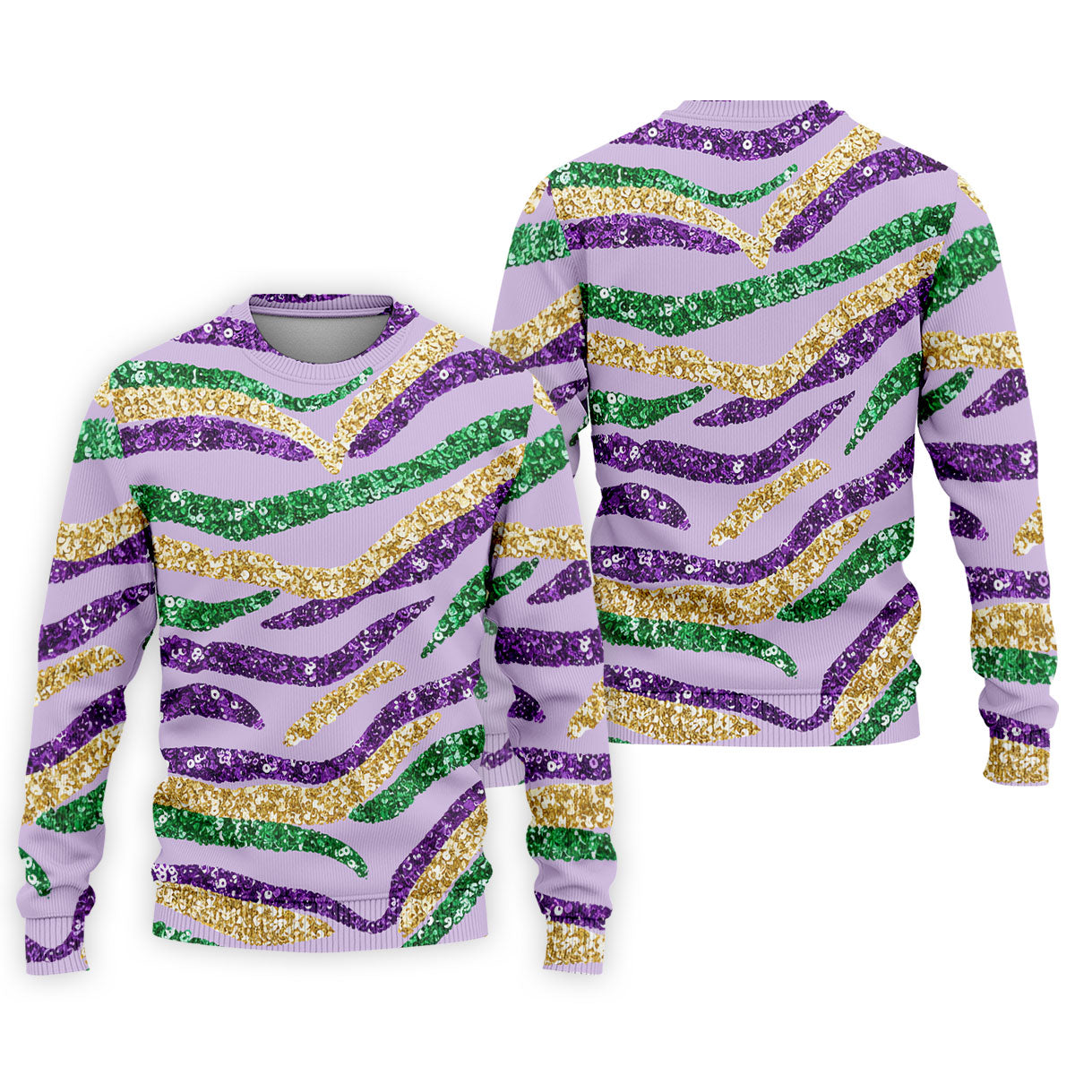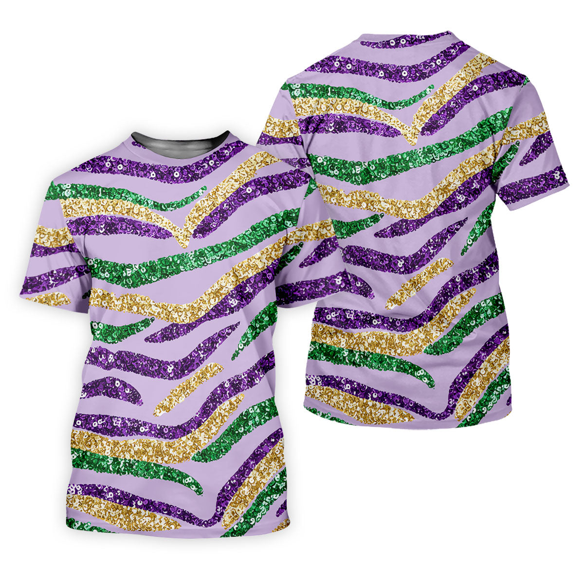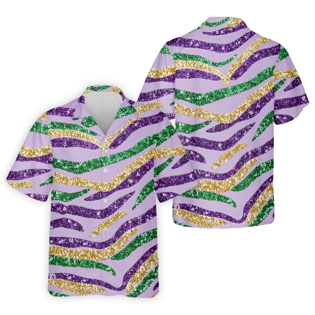 Purple Green Gold Sequin Pattern Light Purple Mardi Gras Golf Shirt, Polo Shirts For Men, Golf Shirts For Men