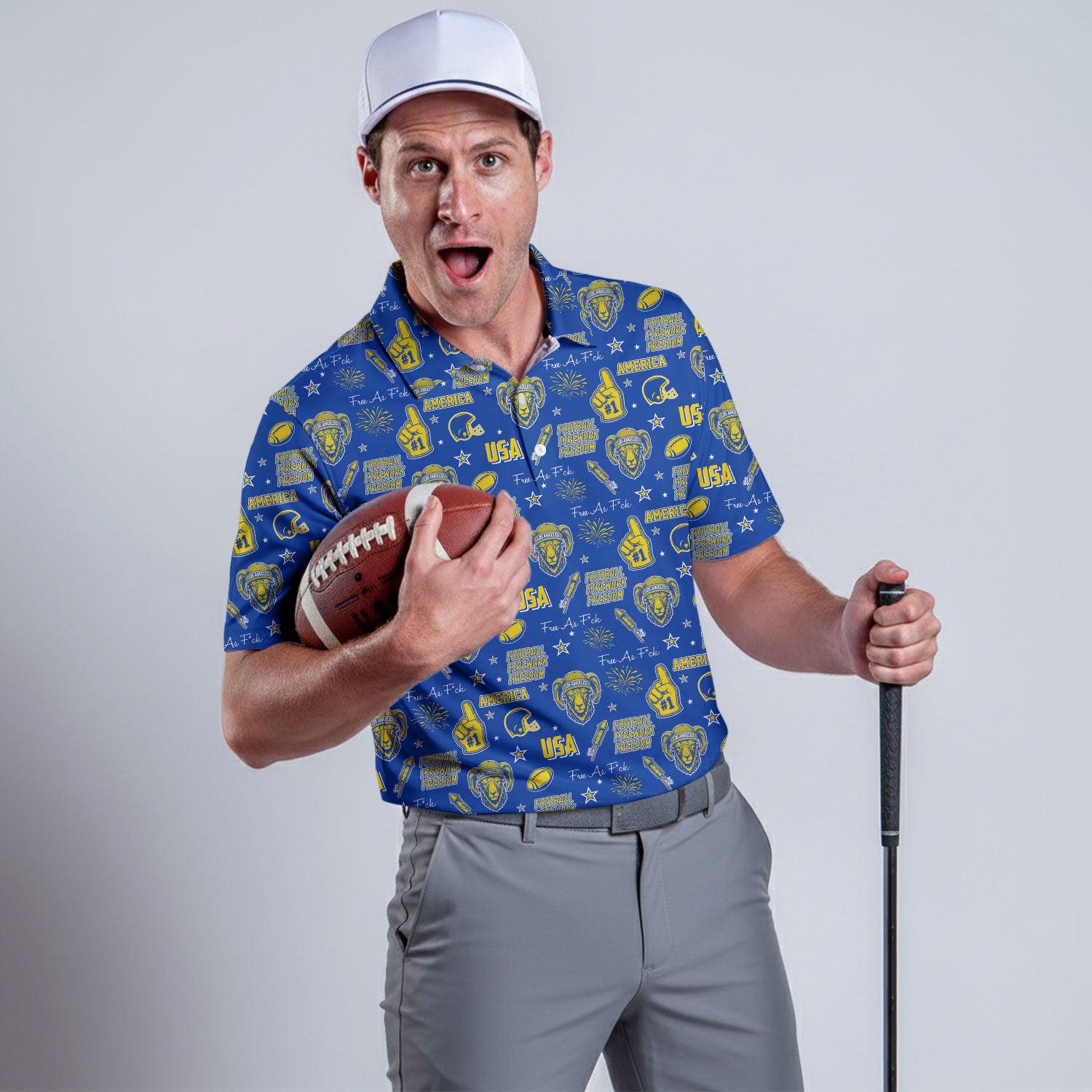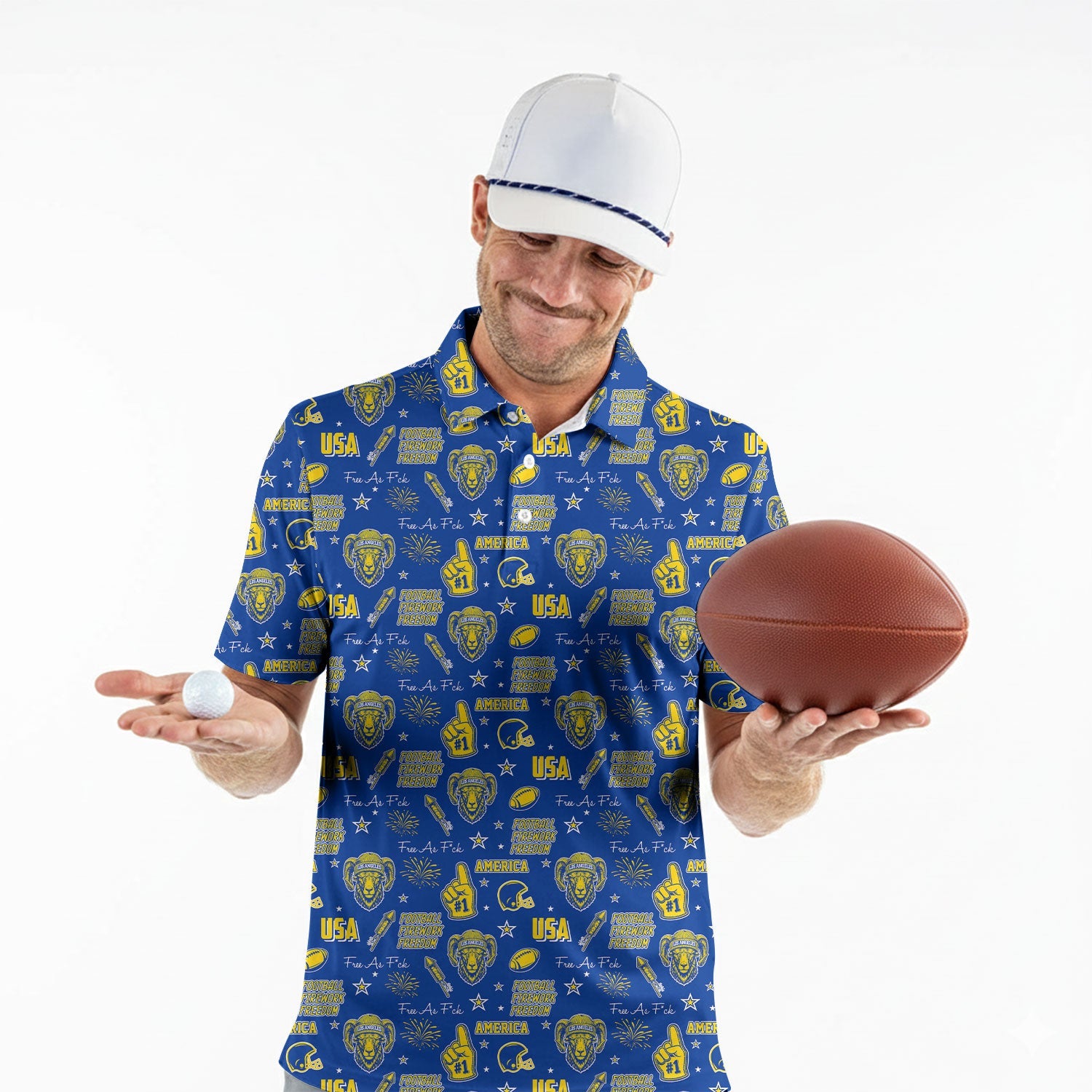 Ram Head Royal Blue And Gold Sport Polo, American Football League Gift Ideas For Football Fans