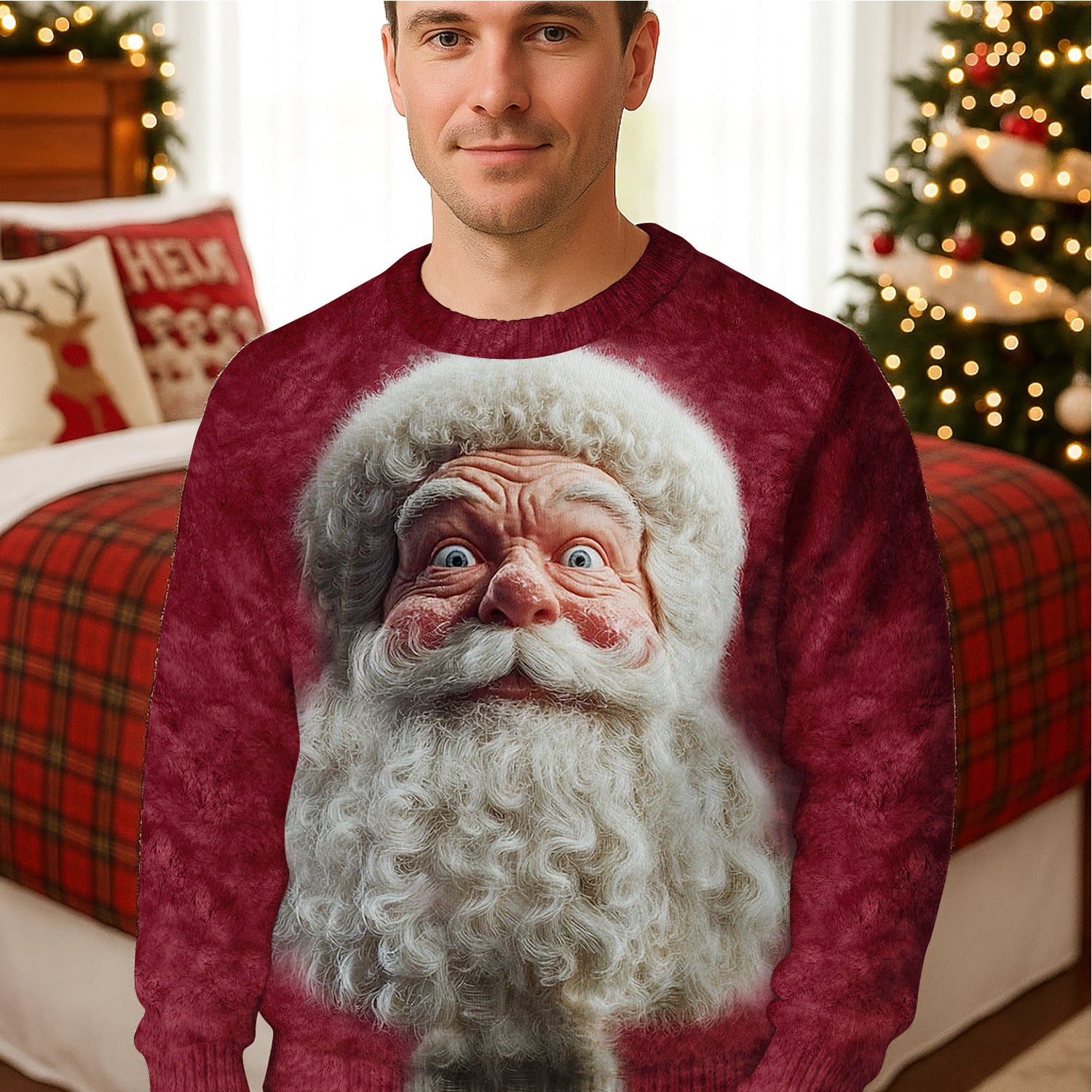Santa Claus Face Funny Holiday Vintage Print Ugly Sweater, Christmas Golf Shirt, Golf Sweater