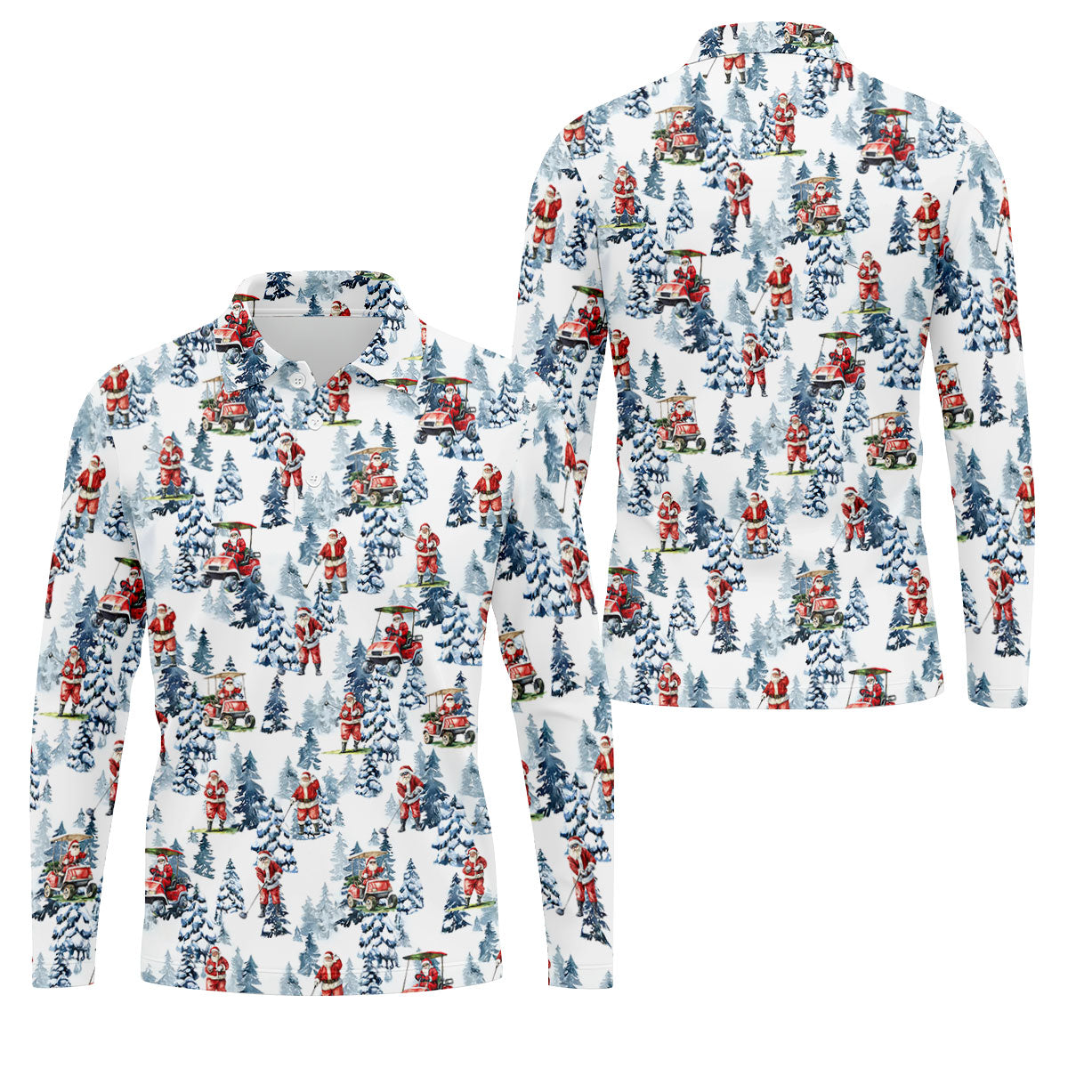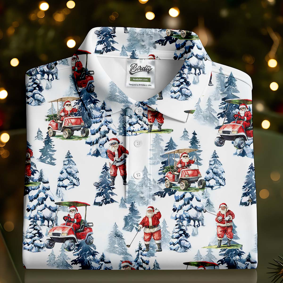 Santa Golfing Polo Shirt Mens, Fun Golf Shirts For Men, Christmas Golf Shirt, Golf Lover Xmas Gift