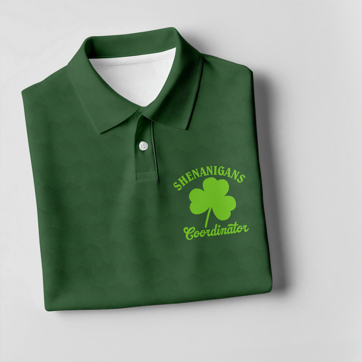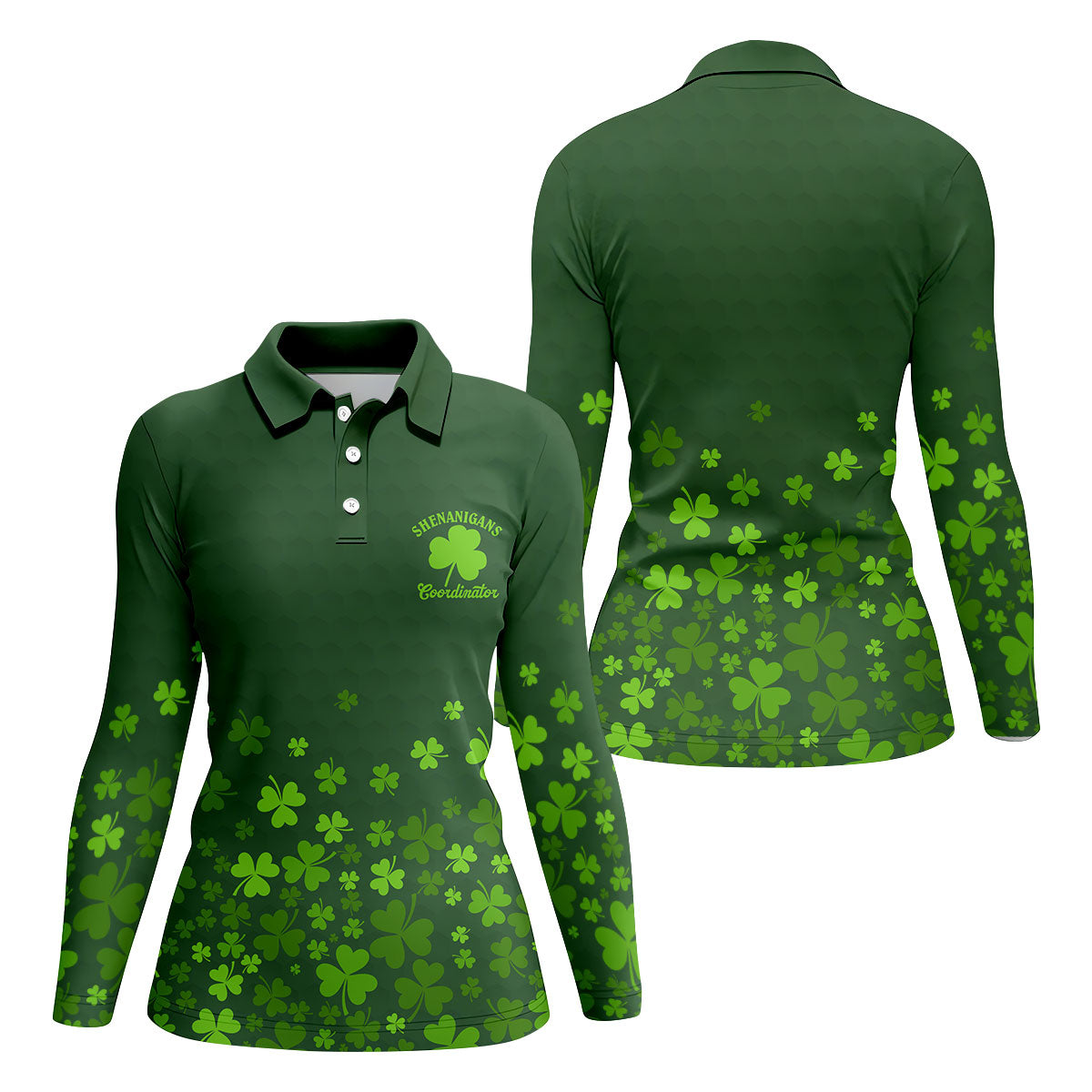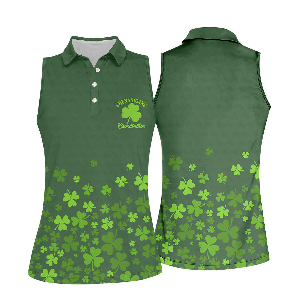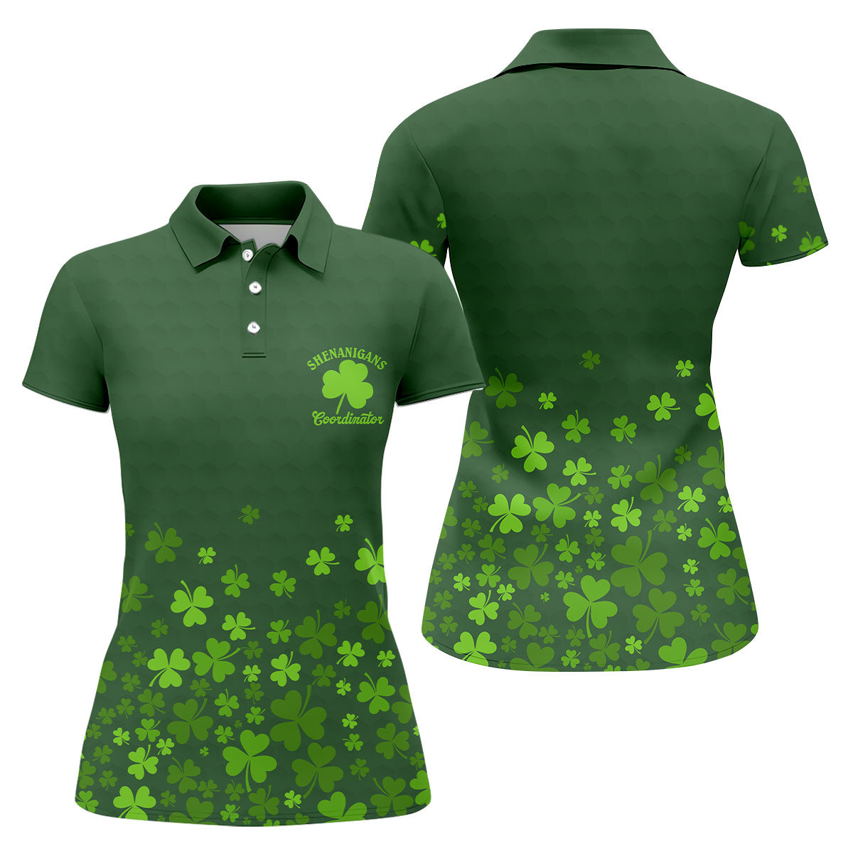 Shenanigans Coordinator Golf Ball Pattern St Patrick Day Green Golf Shirt, Women's Golf Tops, Ladies Golf Polos