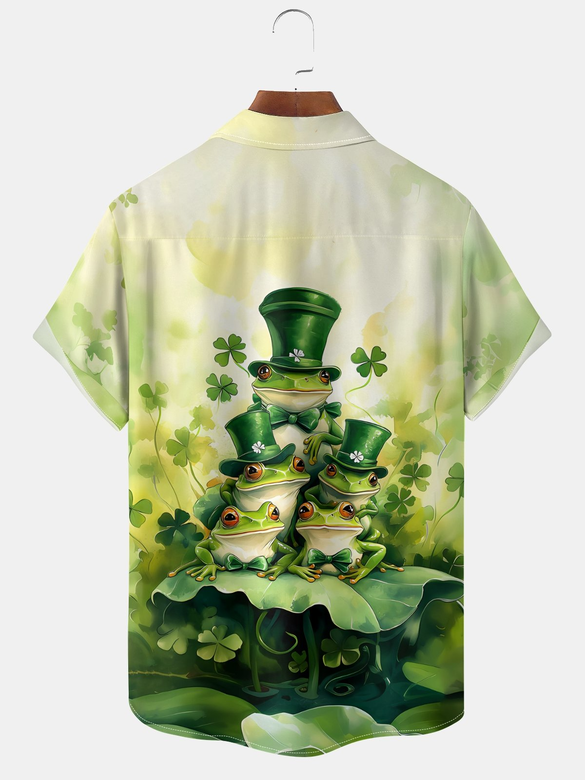 St. Patrick's Day Frog Family Four-Leaf Clover Green Hawaiian Golf Shirt, Tropical Vibe Men's Golf Shirt