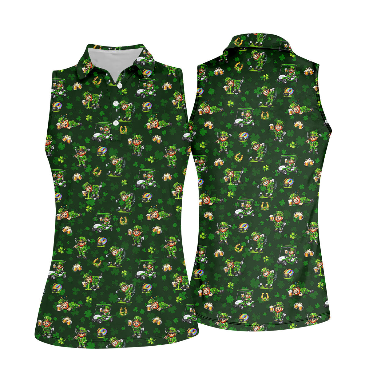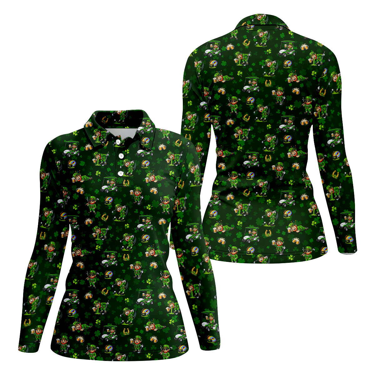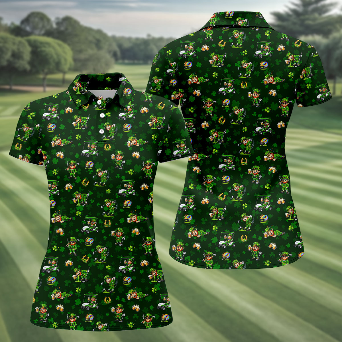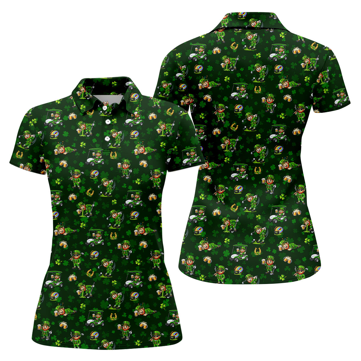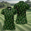 St Patrick's Day Gnome Golf Pose Shamrock Golf Shirt, Fun Women's Golf Shirts, Ladies Golf Polos