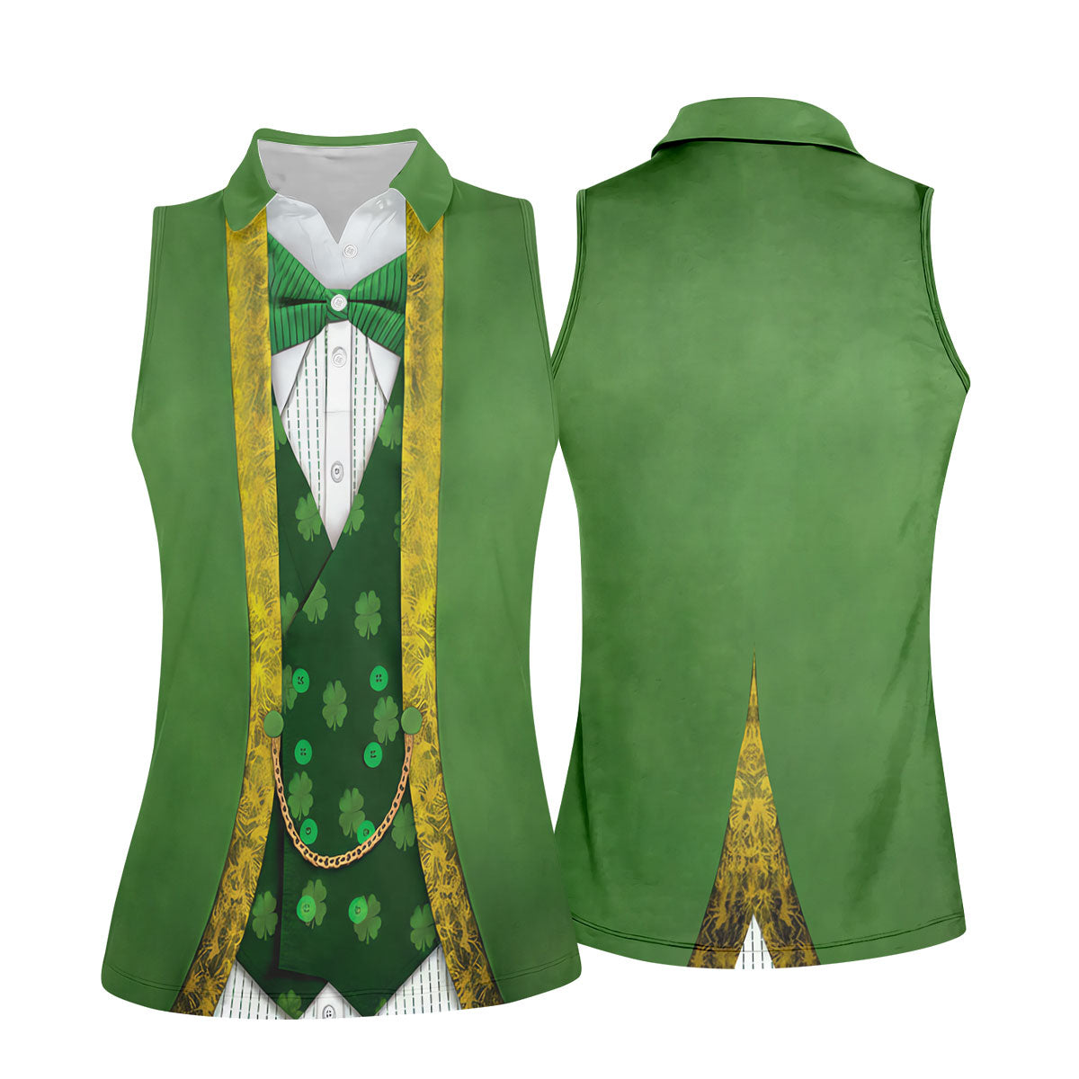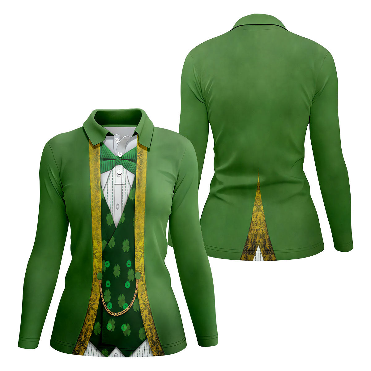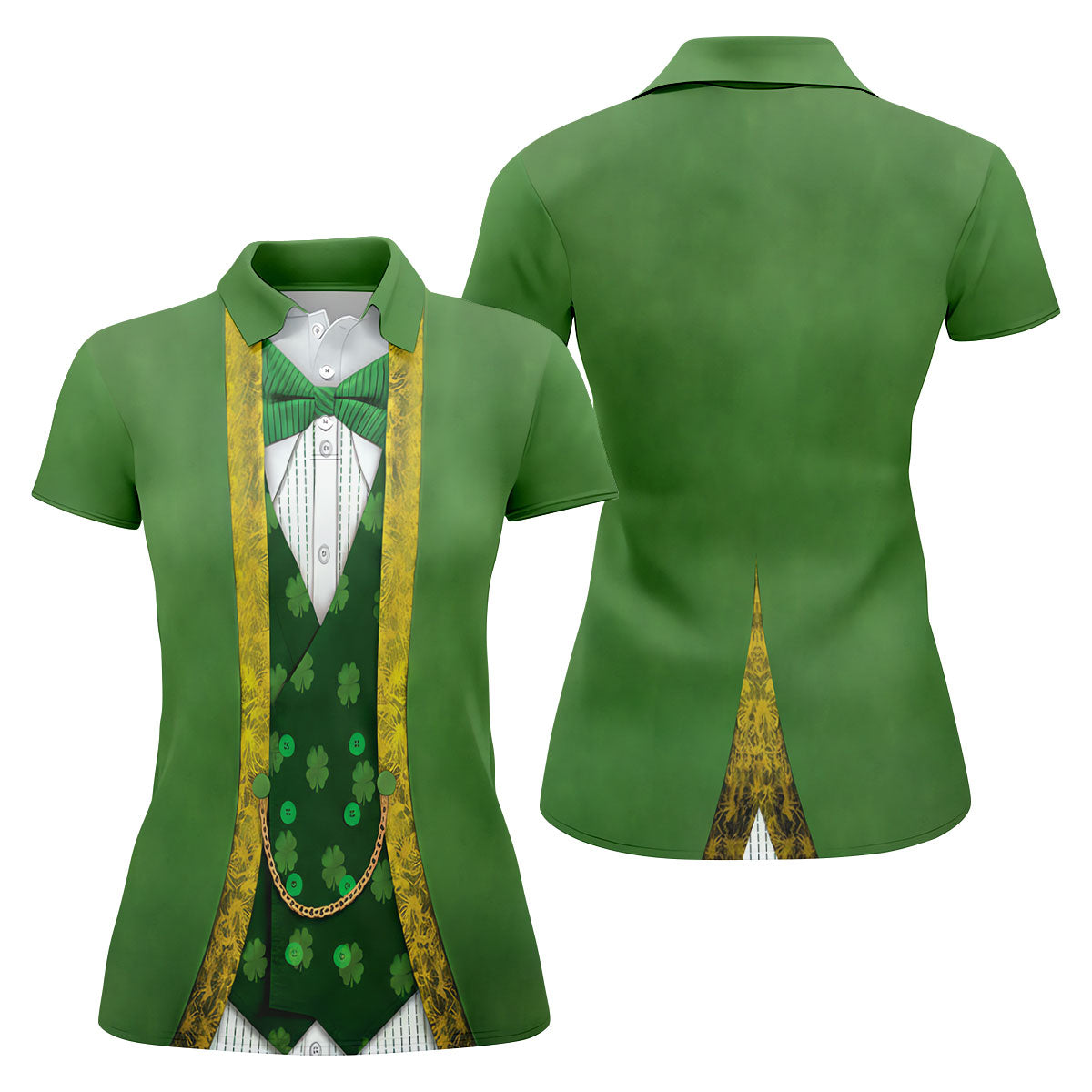 St Patrick's Day Leprechaun Costume Print Women's Golf Shirts, Ladies Golf Polos, Golf Shirt For Women