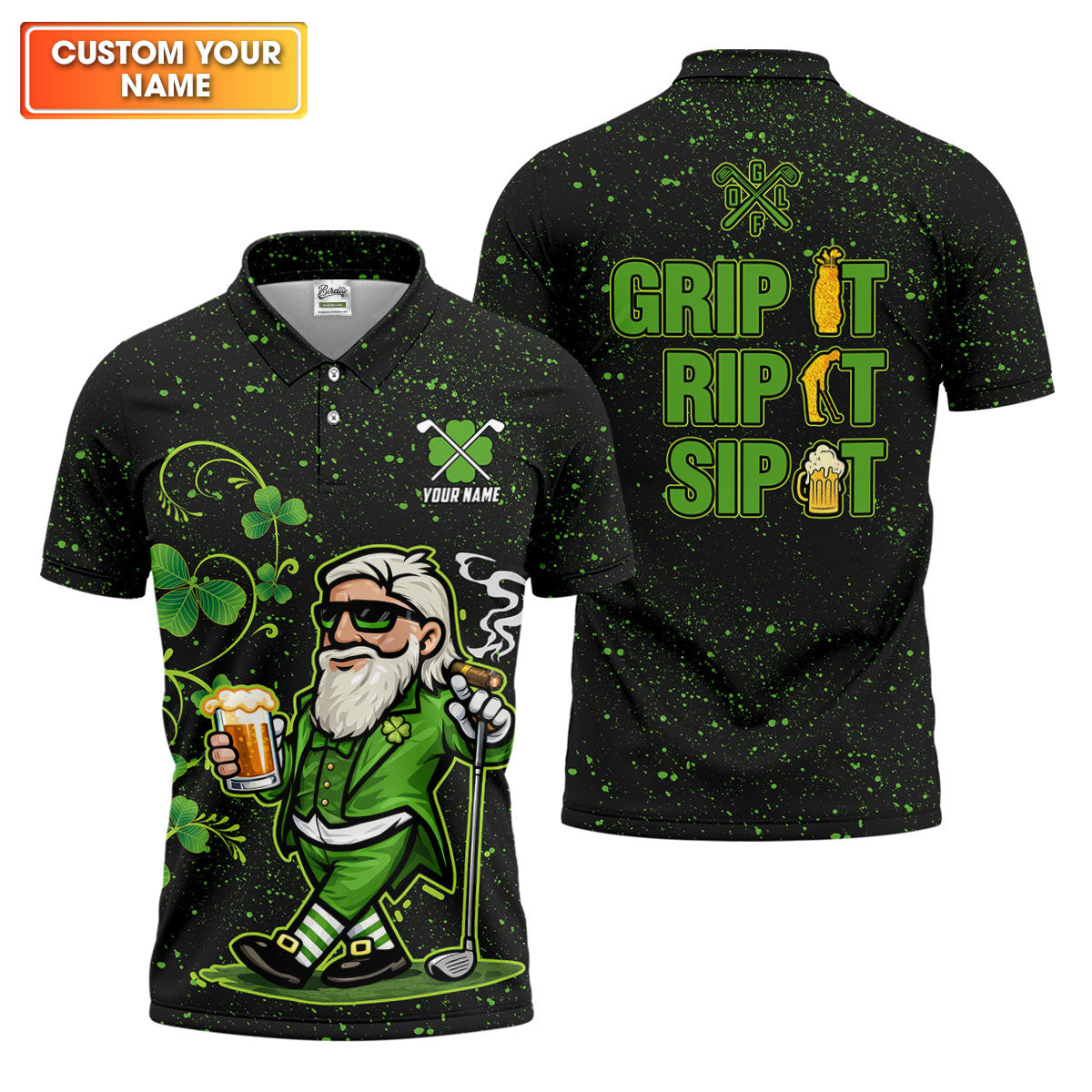 Grip It Rip It Sip It St Patrick's Day Leprechaun Golf And Beer Shamrock Golf Shirt, Golf Shirts For Men