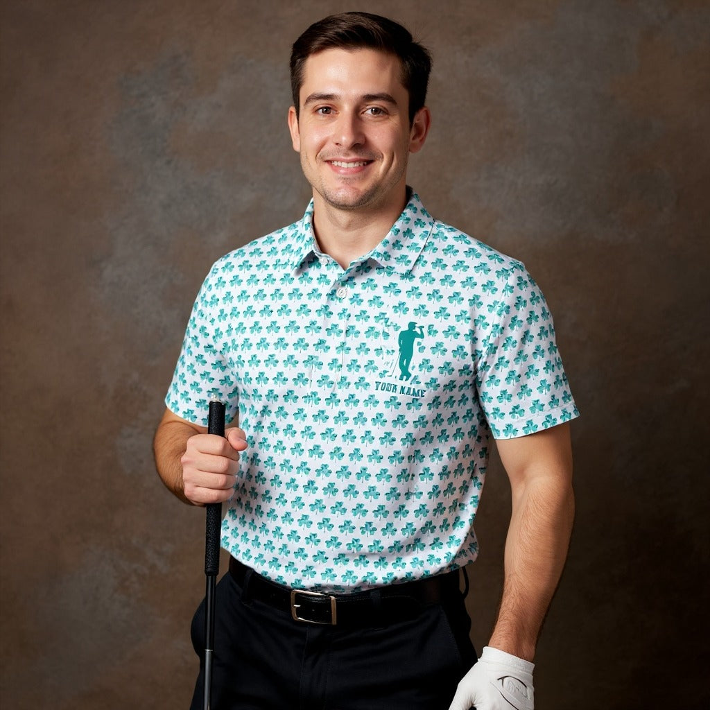 St Patrick's Day Shamrock Golf And Beer Blue And White Golf Shirt, Polo Shirts For Men, Golf Shirts For Men