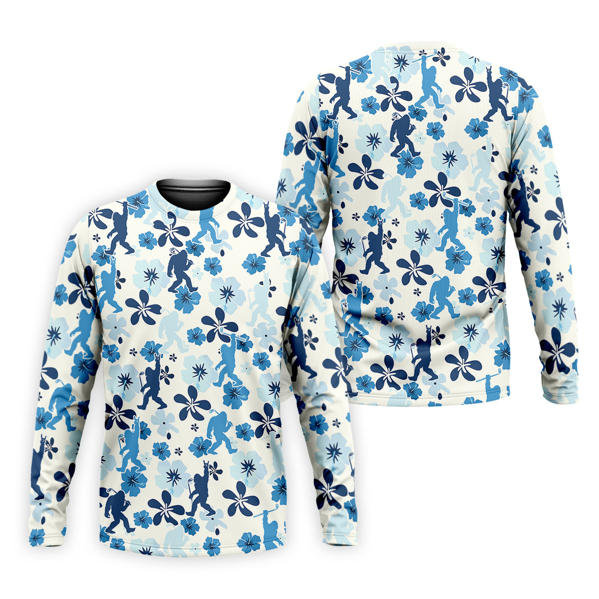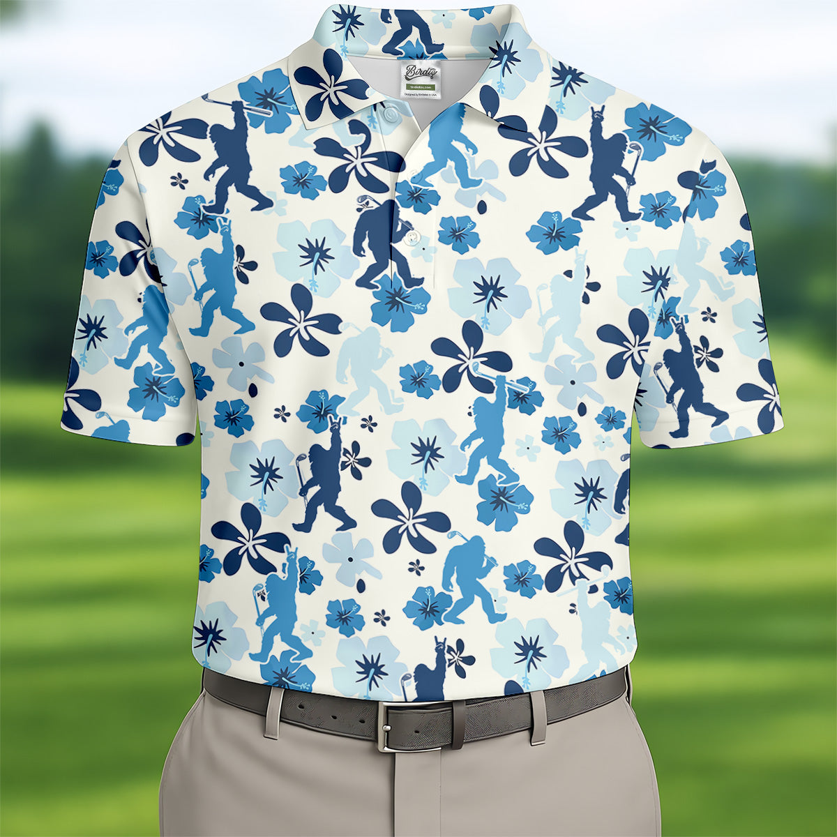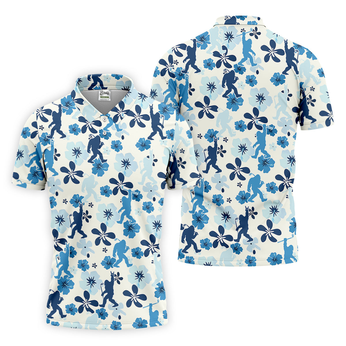 Bigfoot Golf Shirt, Mens Floral Shirt, Hawaiian Golf Shirts, Long Sleeve Polo