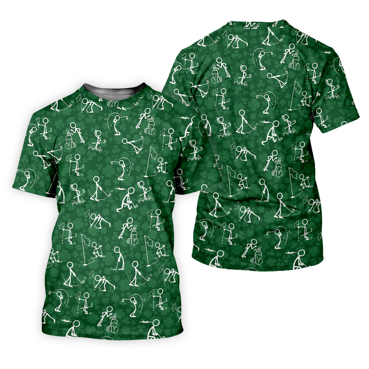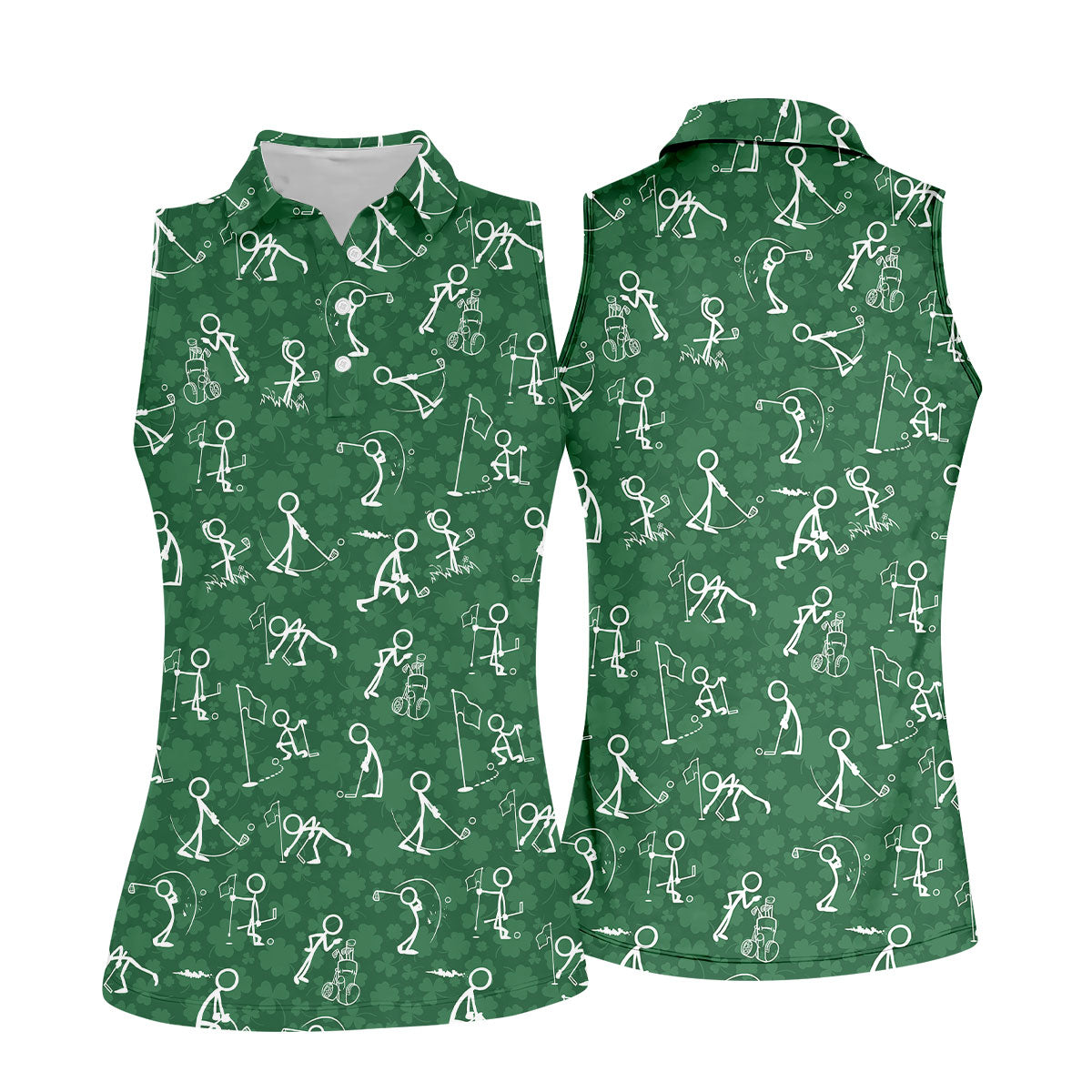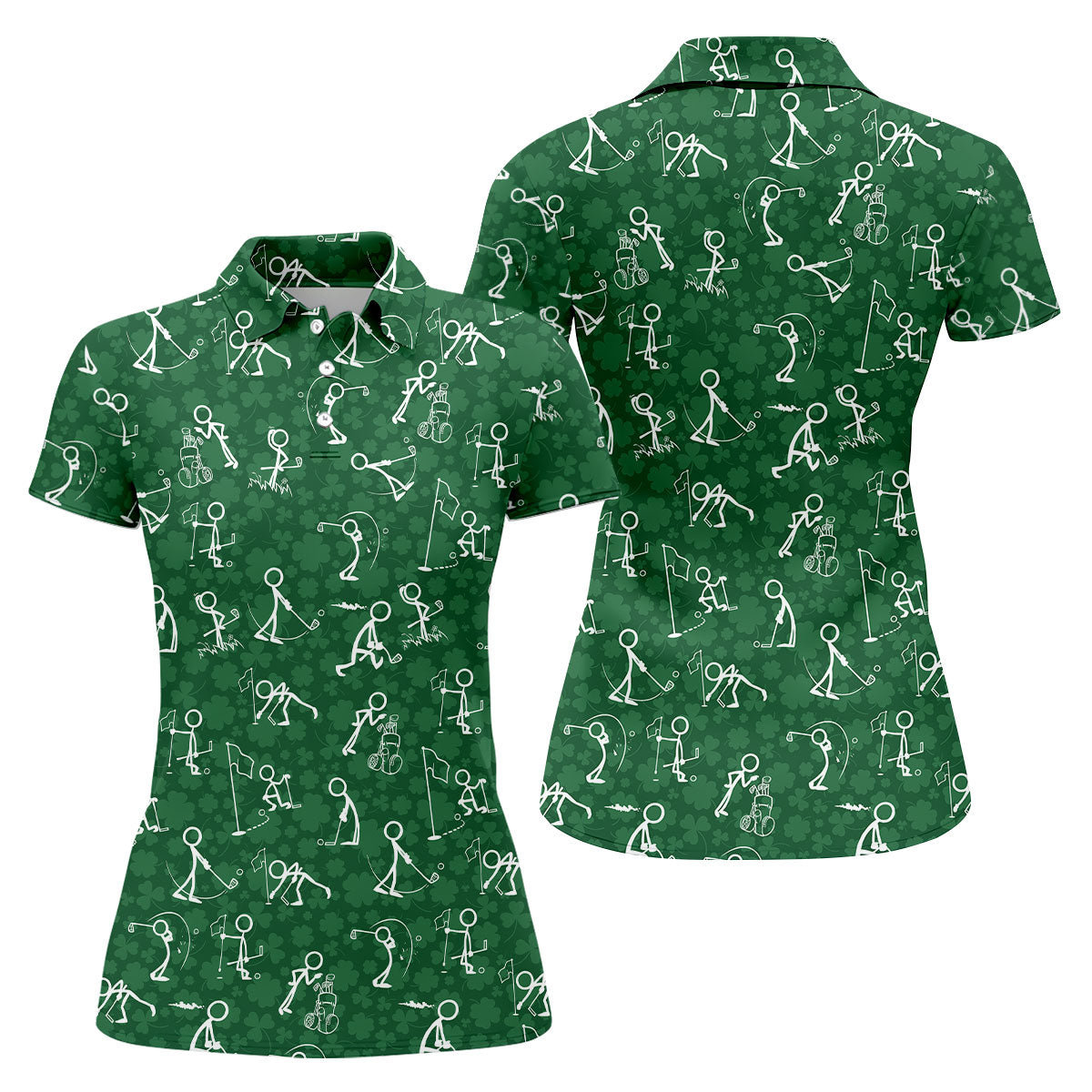 Stick Figure Golf Pose Shamrock Golf Shirt, St Patrick's Day Ladies Golf Polos, Golf Shirt For Women