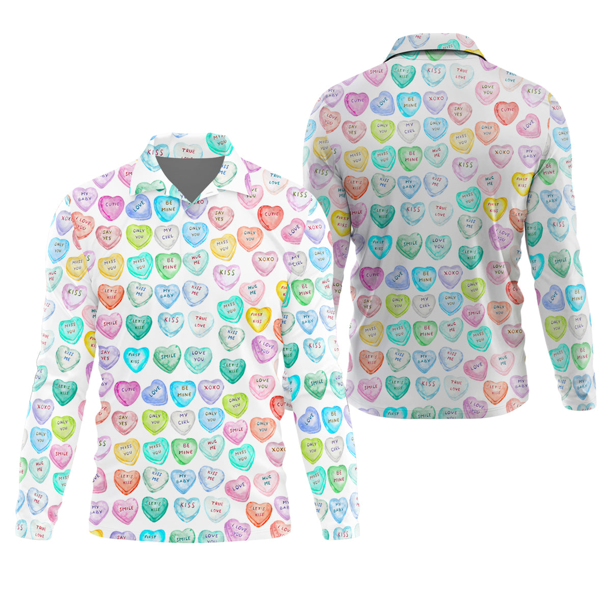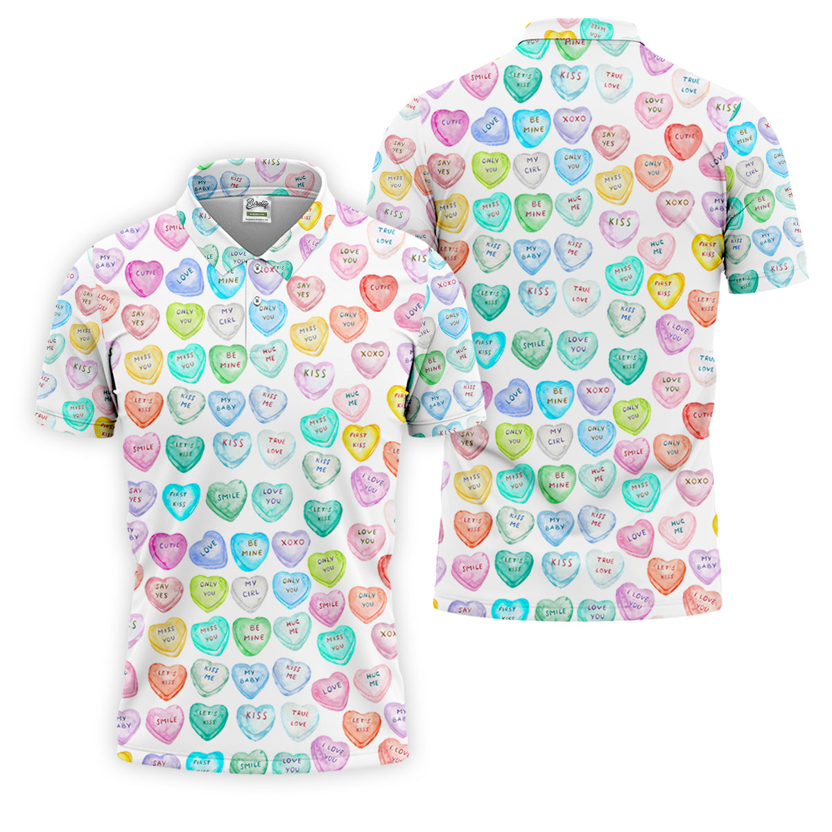 Sweet Words Watercolor Heart Golf Tops For Men, Valentines Golf Gift, Polo Shirts For Men